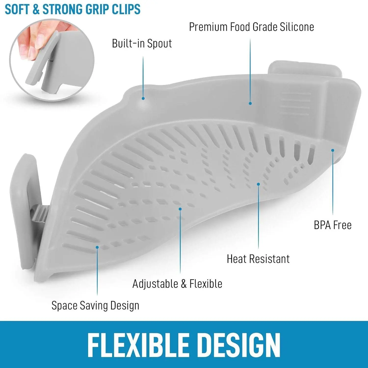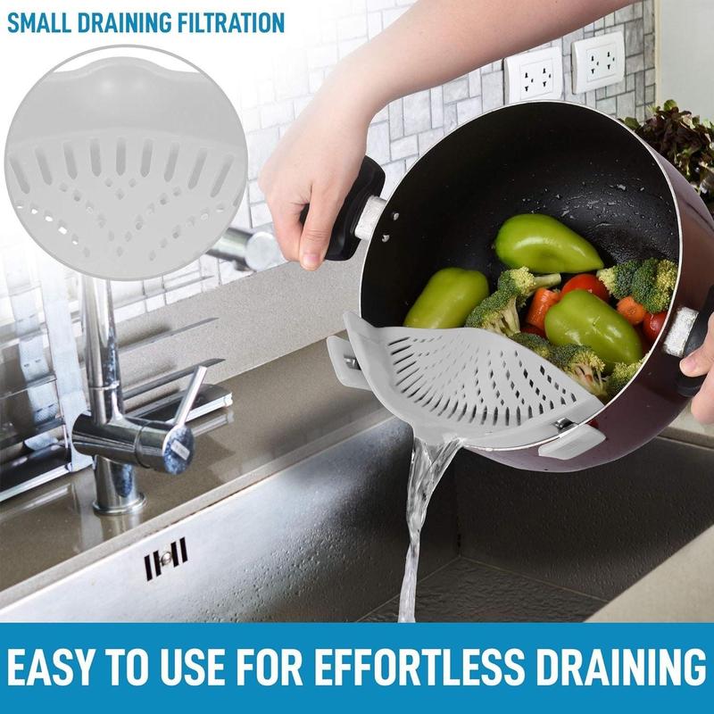Simplify your cooking routine with our clip-on silicone pot strainer. Designed with sturdy clips that latch onto pots, pans, or bowls, it helps you strain with ease—perfect for pasta, vegetables, and more.