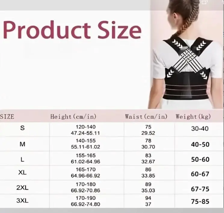 [Product Name] Adjustable Posture Corrector Invisible Back Support Belt Relieve Back Pain Unisex Spine Corrector [Core Selling Point] Say goodbye to back pain: Designed for people who sit for a long time and look down at their phones, it scientifically supports the spine, relieves stiff shoulders and neck and waist pressure, and helps develop an upright posture. Invisible wear, comfortable and burden-free: Ultra-thin and breathable fabric fits the body shape, and it is almost invisible when worn under clothes. It can be used in office, study, and home scenes at will. Flexible adjustment, suitable for all body types: three-stage elastic buckle + adjustable shoulder strap, unisex, adjust the tightness according to the body shape, and provide stable support without tightness. Lightweight and durable, all-weather companionship: It weighs only about 150 grams, and the memory steel bar fits the back curve. It does not squeeze the flesh when worn for a long time, and it can stay comfortable even when sitting or standing for a long time. 【Applicable people】 Office workers who work at desks for a long time Students who study with their heads down People who sit for a long time at home watching TV series and doing housework Fitness beginners who need to correct their posture 【How to use】 Unfold the correction belt and wrap the shoulder straps on both sides around your shoulders; Adjust the back support plate to the middle of the spine; Fasten the waist Velcro according to comfort; Wear it for 1-2 hours a day to gradually improve your posture. 【Why choose us】 500,000 pieces sold worldwide, 96% of users reported "perceived posture improvement in one week" Medical-grade elastic fiber + breathable mesh design, sensitive skin friendly 【Take action now】 Instead of enduring back pain, it is better to give your spine a gentle correction!
