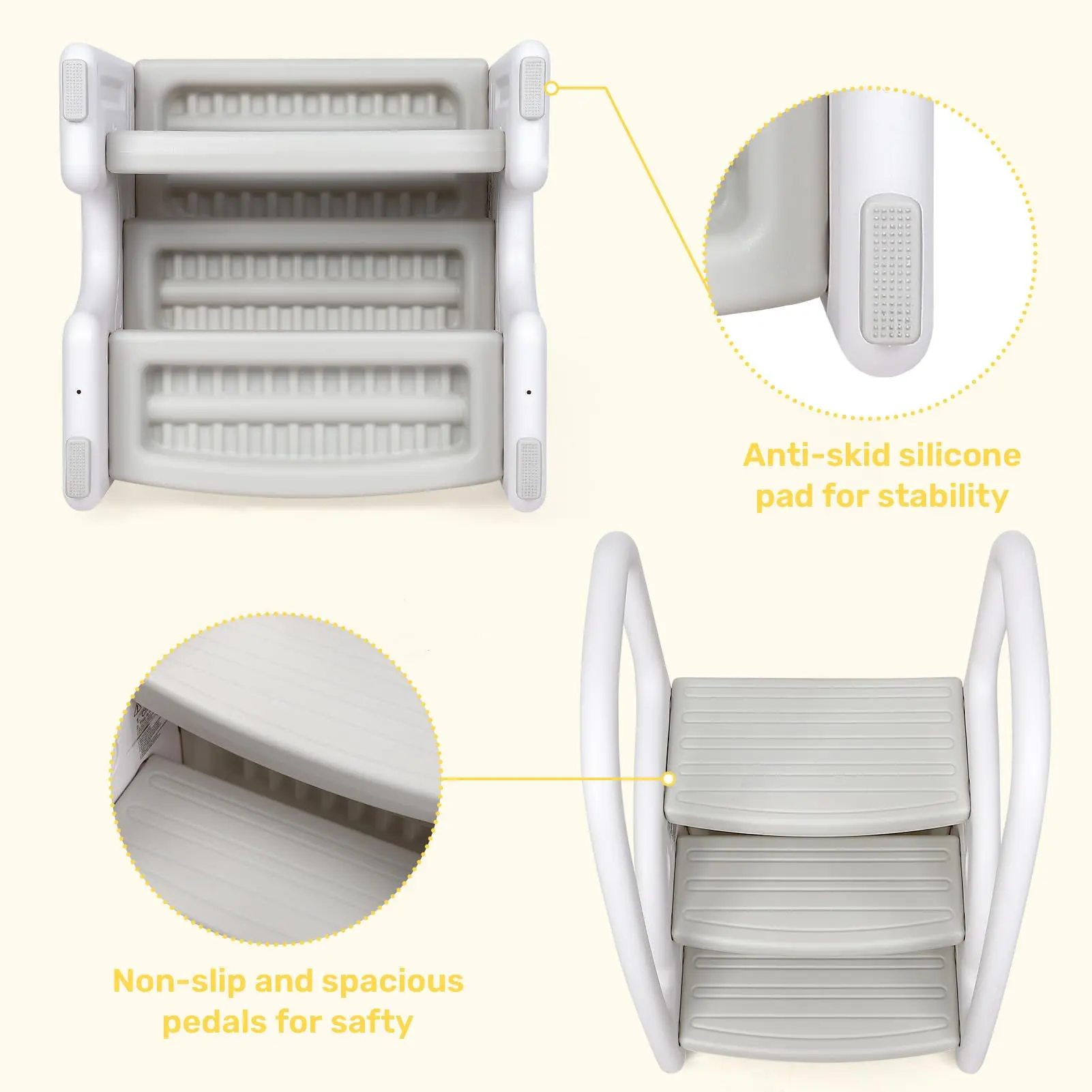 Spacious and non-slip step pepal