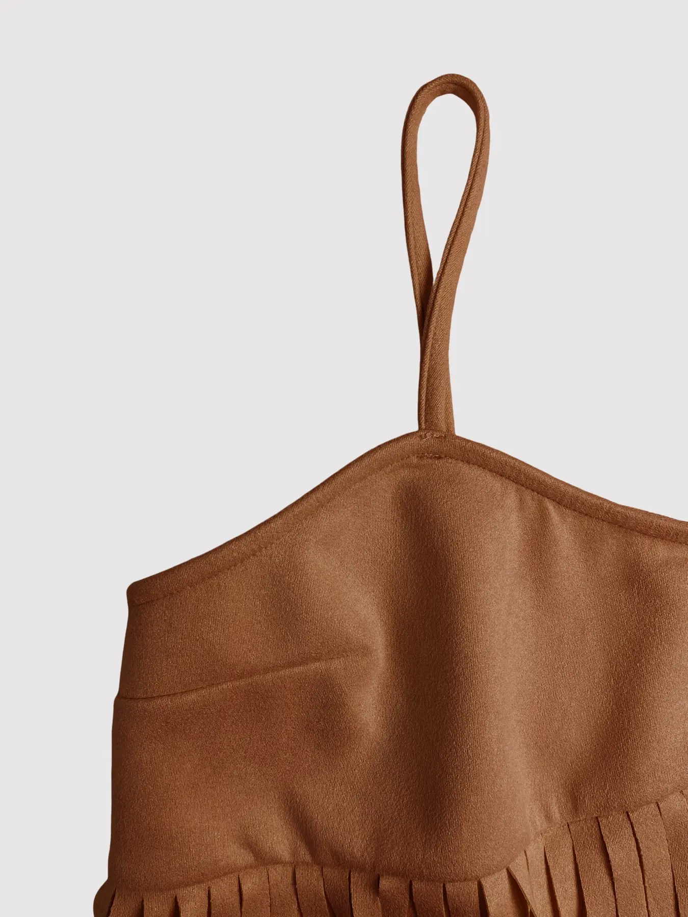 Adjustable Strap Fringe Outfit - Western Baddie Spaghetti Strap Cami & Skirt Matching Set #TwoPieceSet #CoOrdSet #OOTD #FashionTikTok #WomensFashion #OutfitInspo #TrendingFashion #TikTokMadeMeBuyIt #FestivalFashion #SummerFashion #FringeSet #SuedeSet #BrownFringeSet #FringeCropTop #FringeSkirt #SuedeCropTop #BrownTwoPiece #CamiCropTop #SkirtSet #WesternFashion