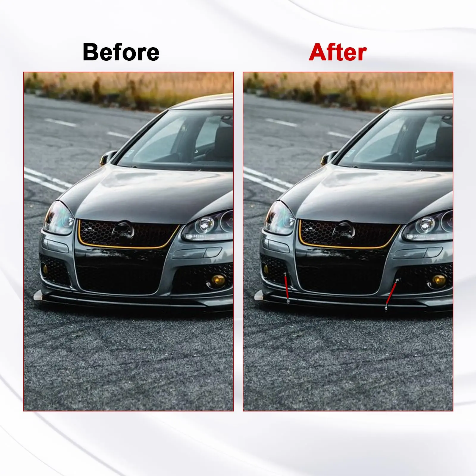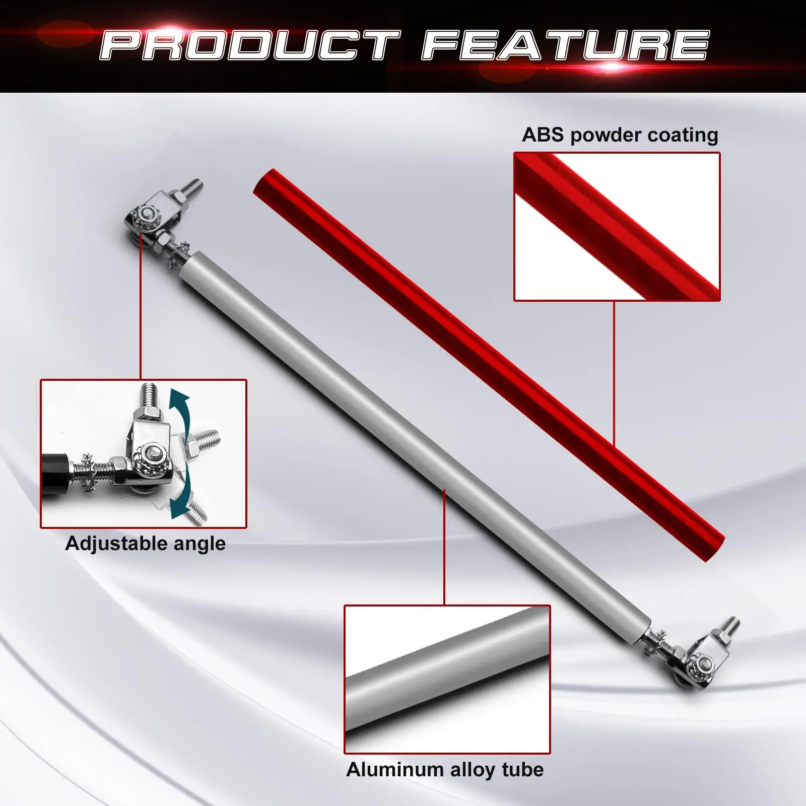 • Compatible with most vehicles, these strut rods are a universal addition to your car. Simply install them to elevate and support your car's front bumper lip. The set includes two red strut rods, ensuring a cohesive look for your vehicle.
