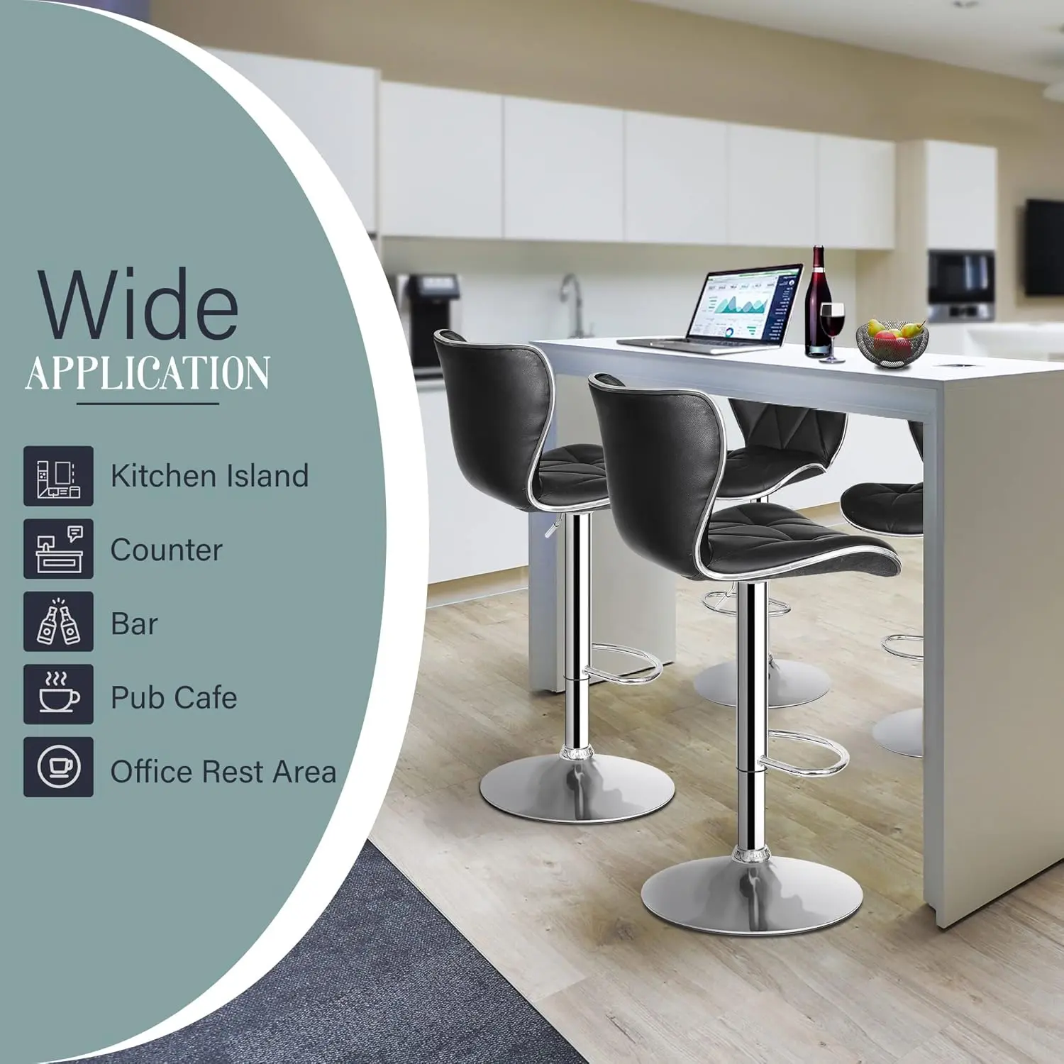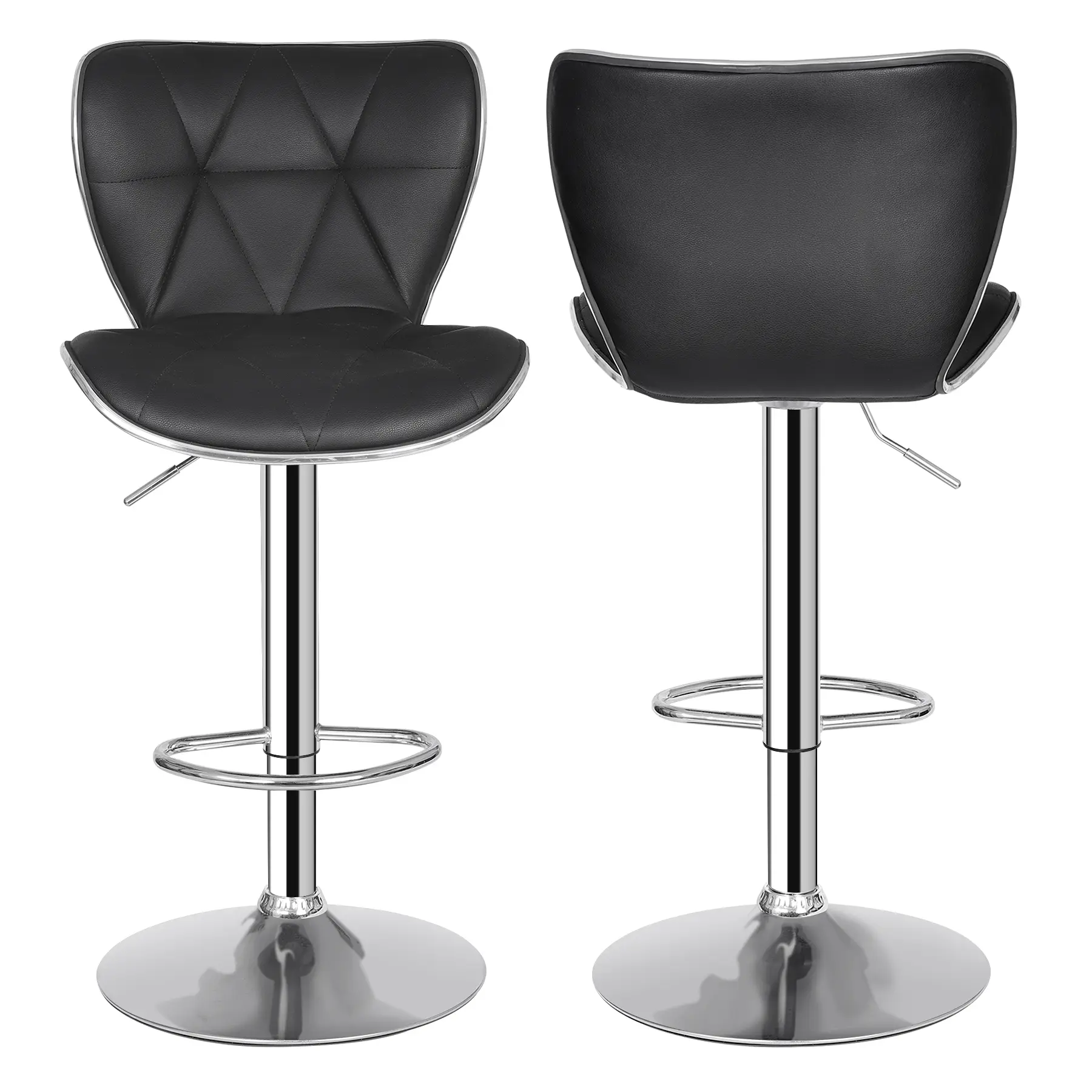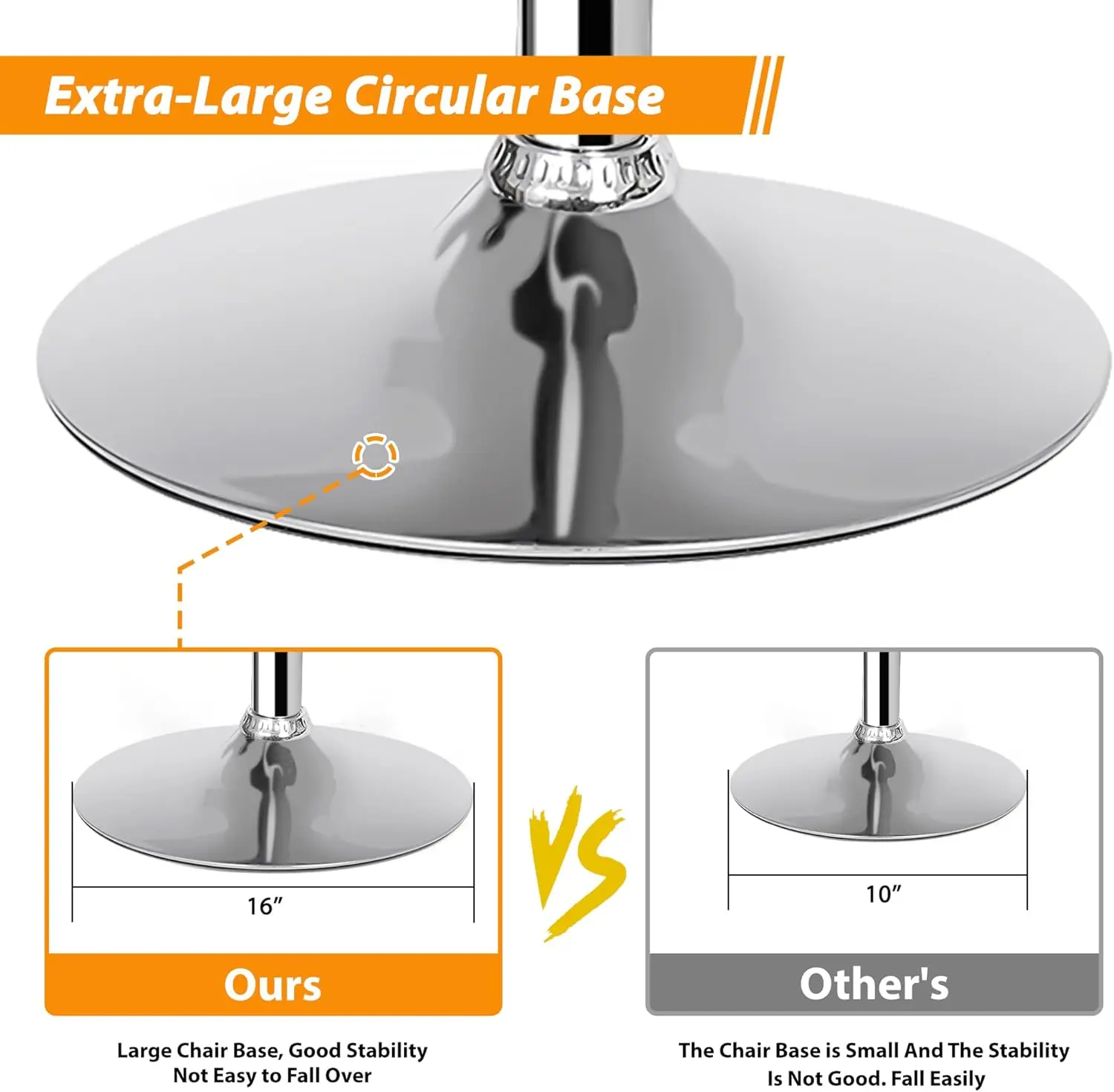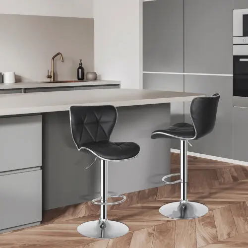 Zenstyle set of two 360° swivel bar stools adds a couple of sleek silhouettes and plenty of modern style to your kitchen or home bar. The frame of each stool is made of strong steel, and it rests on a sturdy circular chrome steel base, which has a rubber ring to prevent your floor from scratching. The comfy seat is wrapped in PU Leather, and filled with a sponge, providing you with ample support as you enjoy a cup of coffee. Overall Dimensions: 16" W x 15" D x 25"-33.5"H | Seating Area Dimension: 12" W x 15" D x 12"H, suitable for most people. An open circular footrest, 25"-33.5" height-adjustable seat, and curved edges complete this eye-catching set.