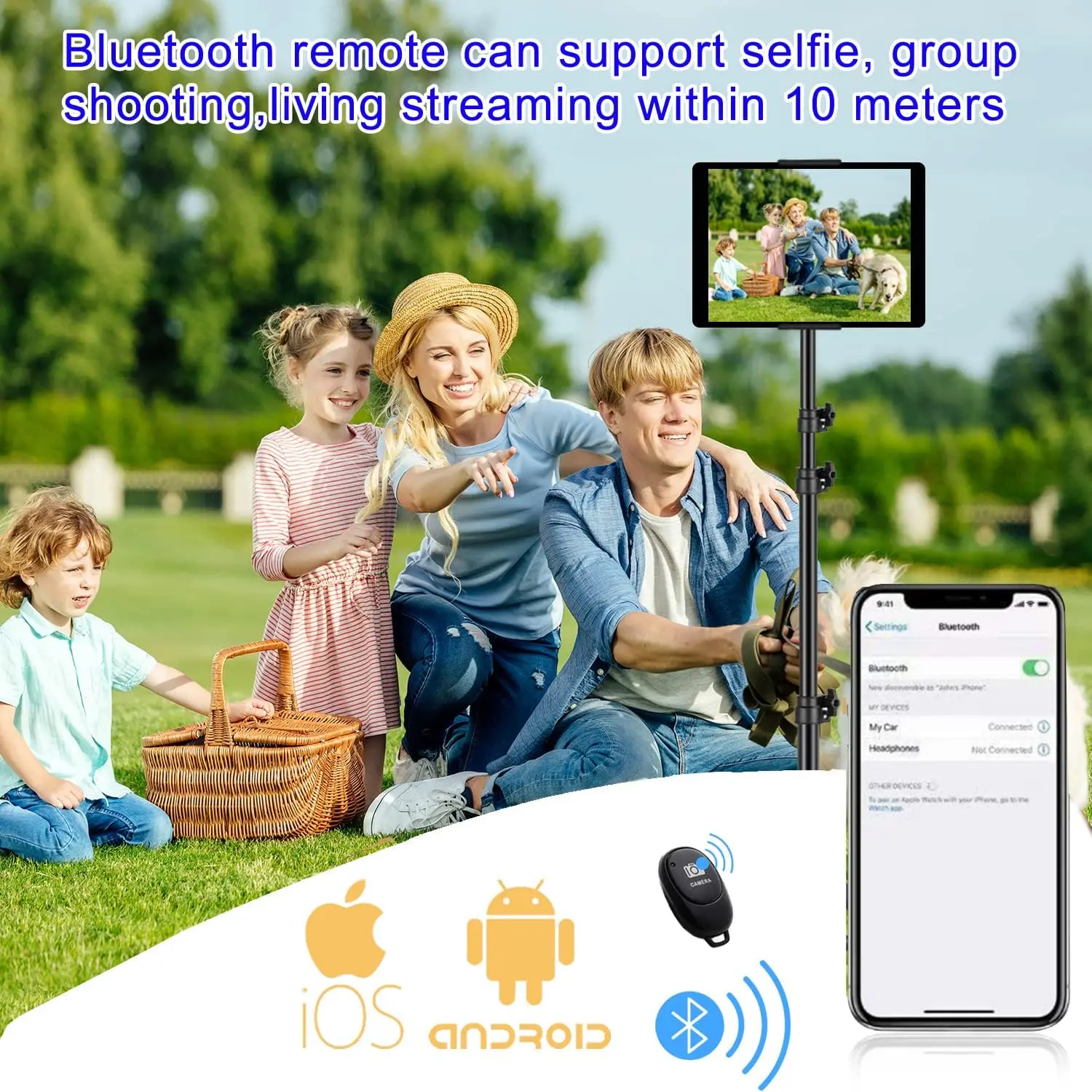 【Release your Hands】: The tablet tripod stand can hold your tablet and free your hands, so that make you focus on what you are doing. The tablet tripod stand can be anywhere, such as living room, gym, kitchen, office, classroom, etc. And it is for Zoom calls, online music class, family online chats, watching movies.Also, this tablet tripod holder with a remote. Can use the remote control to take beautiful pictures, record clear videos, etc.