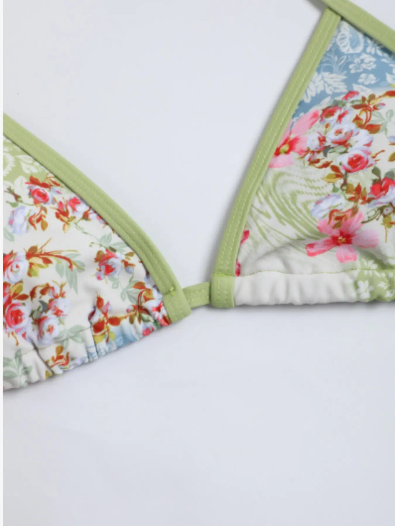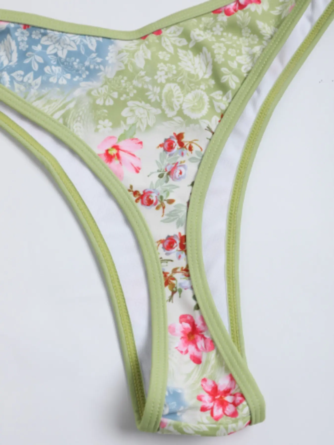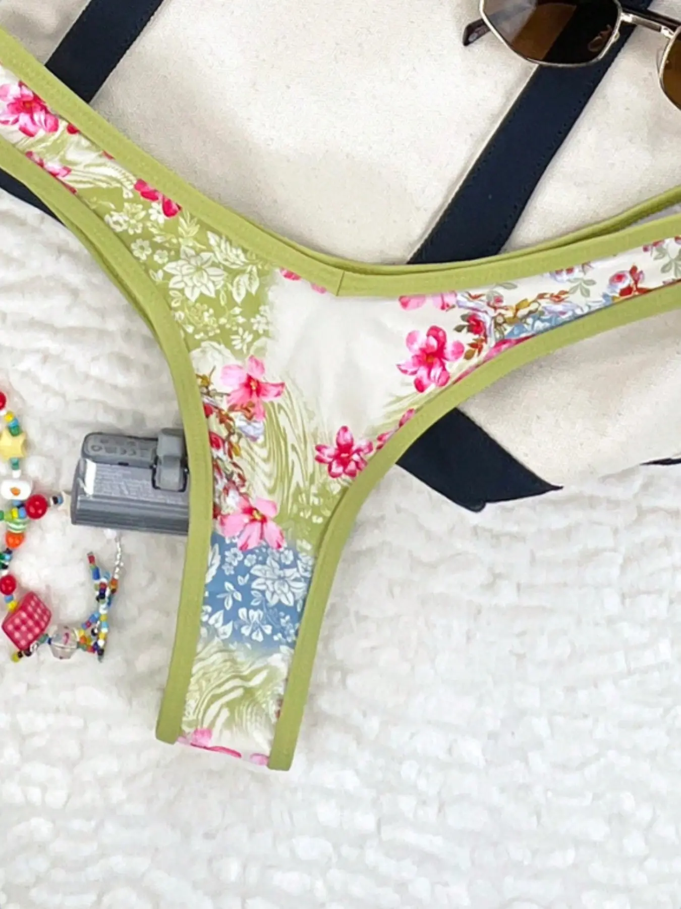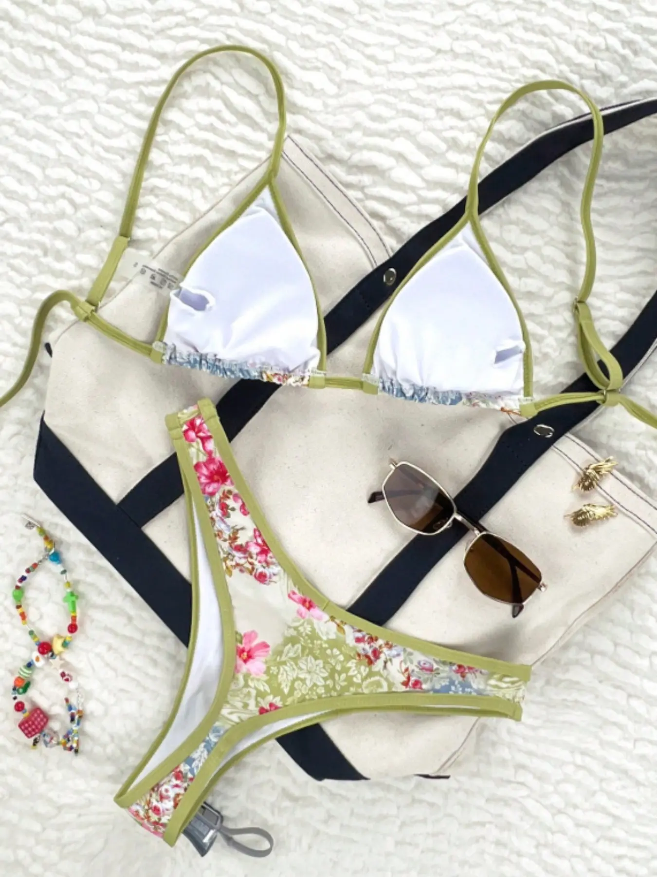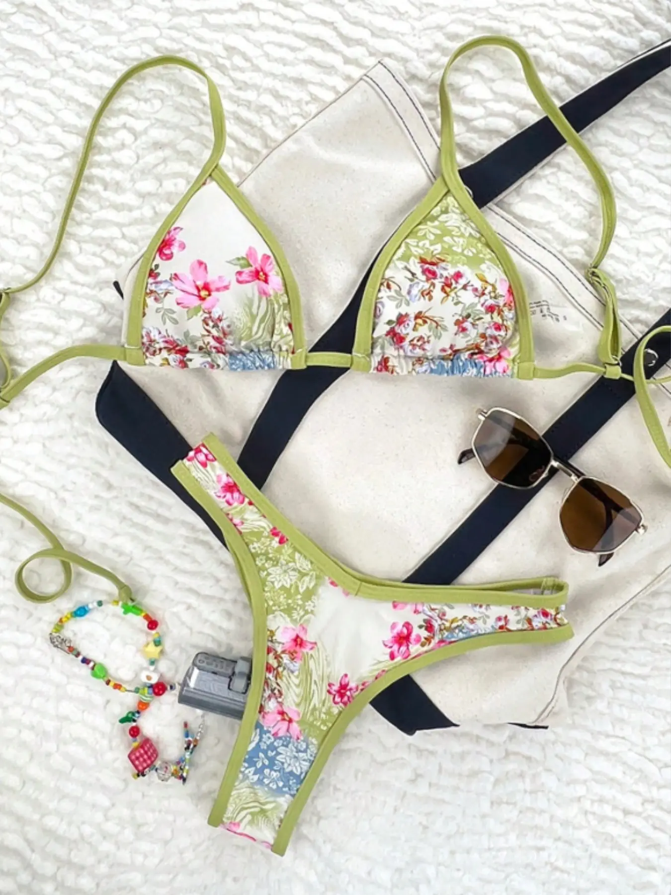 5. Adjustable Thin Strap Printed Floral Bikini Set for Women, 2026 Spring & Summer Lightweight Breathable Beach Vacation Swimwear