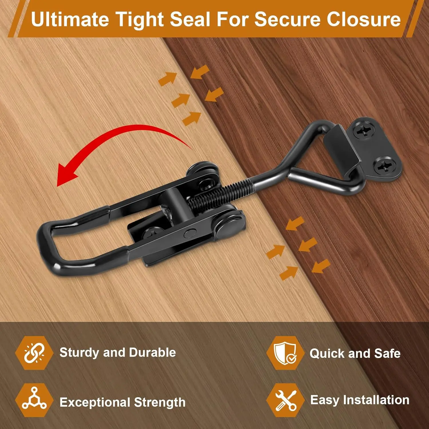 ·ULTIMATE TIGHT SEAL TO PROTECT YOUR BELONGINGS: Designed to provide an ultimate strong, tight seal, our toggle latch clamps prevent air leaks and keep doors or lids firmly closed, perfect for freezers, cabinets, or storage boxes. They ensure your contents stay safe and secure, even under pressure. You can trust that your food, tools, or equipment will be protected, saving you from costly replacements or repairs.
