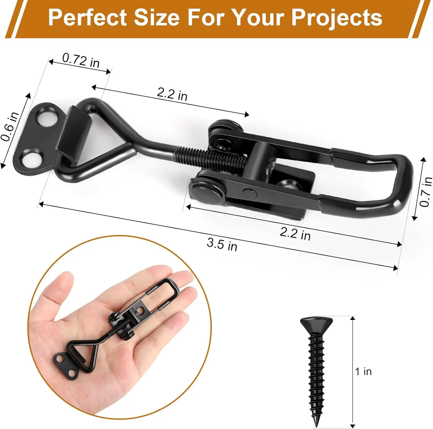 ·PREMIUM ADJUSTABLE TOGGLE LATCH FOR A PERFECT FIT: Featuring a premium adjustable threaded hook, our toggle latches clamp lets you easily fine-tune tension for a perfect fit on any project, from freezers to smokers. It guarantees a secure hold without slipping. You’ll enjoy seamless installation and peace of mind, knowing your setup is perfectly tailored to your DIY or repair needs.