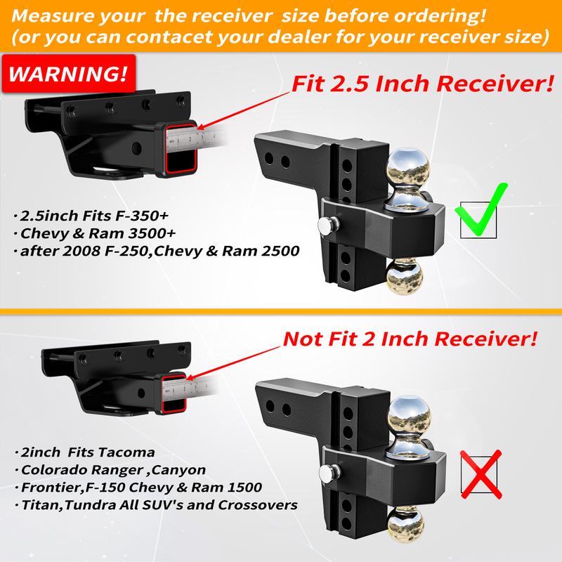 Heavy-Duty Strength → 2" ball → 8,000 lbs | 2-5/16" ball → 18,500 lbs. Tow trucks, RVs, or trailers with ease.