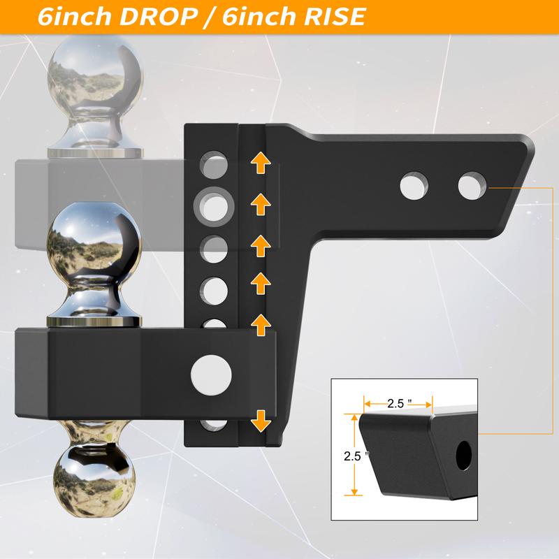 Quick-Change System → Integrated balls + 6" drop/rise + secure pins = flexible, fast setup.