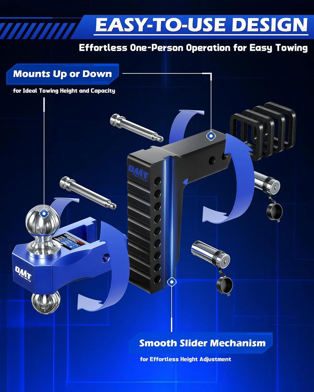 Easy Installation & Adjustment: This adjustable trailer hitch mounts up or down for quick setup and versatile use. Its smooth slider mechanism makes adjusting the hitch height a breeze. Just slide, lock, and you’re ready to hit the road