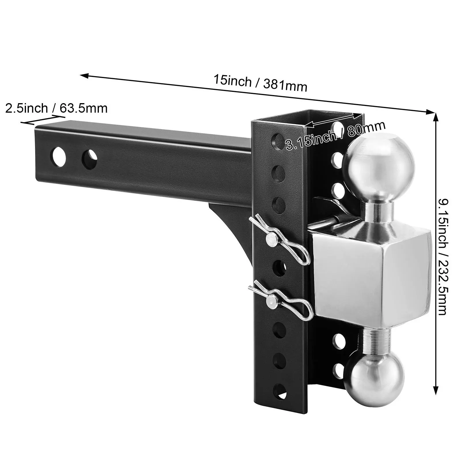 • Designed To Fit Your Vehicle: 2.5" shank fits any 2.5" receiver. Different height adjustments make it universally suitable for various models. What’s more, this adjustable trailer hitch is designed with an adjustable base, capable of rising or dropping 6" to meet any challenge. Choose your vehicle and get ready for anything.
