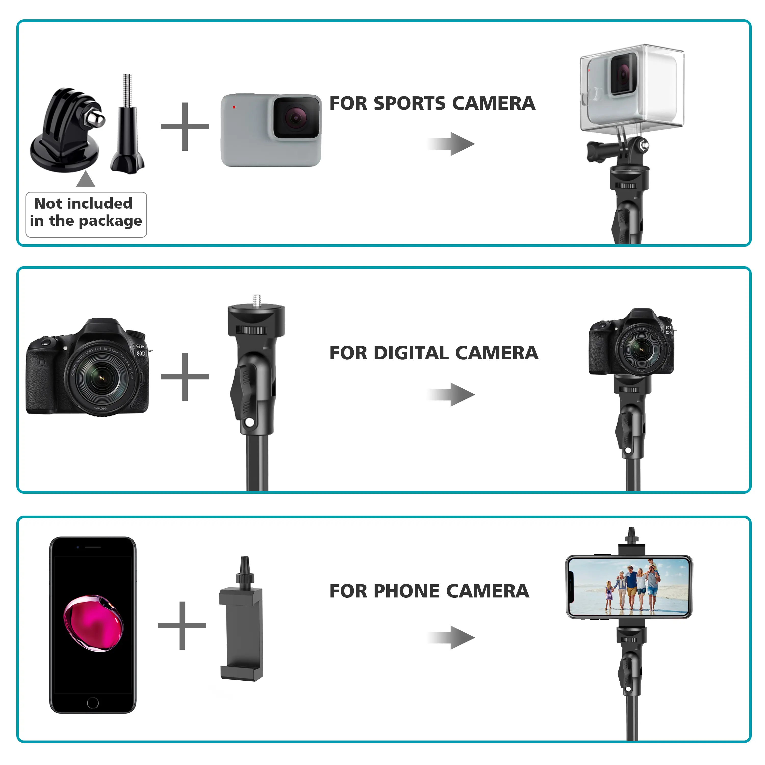 Ever struggled to get the perfect selfie or steady shot? This 62" adjustable phone tripod and selfie stick combo makes capturing moments a breeze! Whether you're vlogging, live streaming, or snapping pics, this versatile gadget adjusts from a handy selfie stick to a tall tripod with flexible angles. The 360° swivel lets you switch effortlessly between portrait and landscape modes, while the universal mount fits most smartphones and cameras. The quick flip lock makes height adjustments smooth and secure, so no more shaky shots! Plus, the included Bluetooth remote means you can snap photos from a distance without rushing back to the device. Inside the box, you'll find the tripod, universal phone holder, adapter, and the wireless remote shutter. Ready to upgrade your photo game? Grab this all-in-one set and start capturing memories like a pro!