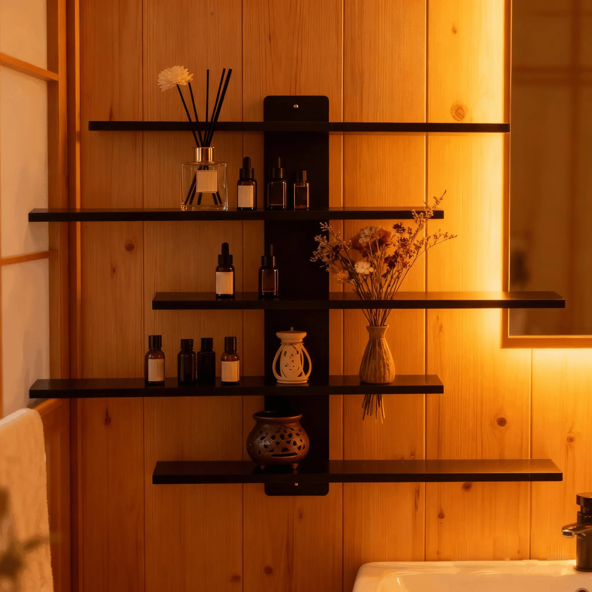 "The bathroom has been in use for half a year without any mold. The water droplets dry up easily with a wipe. It's much more durable than the previous wooden shelves."--Maria