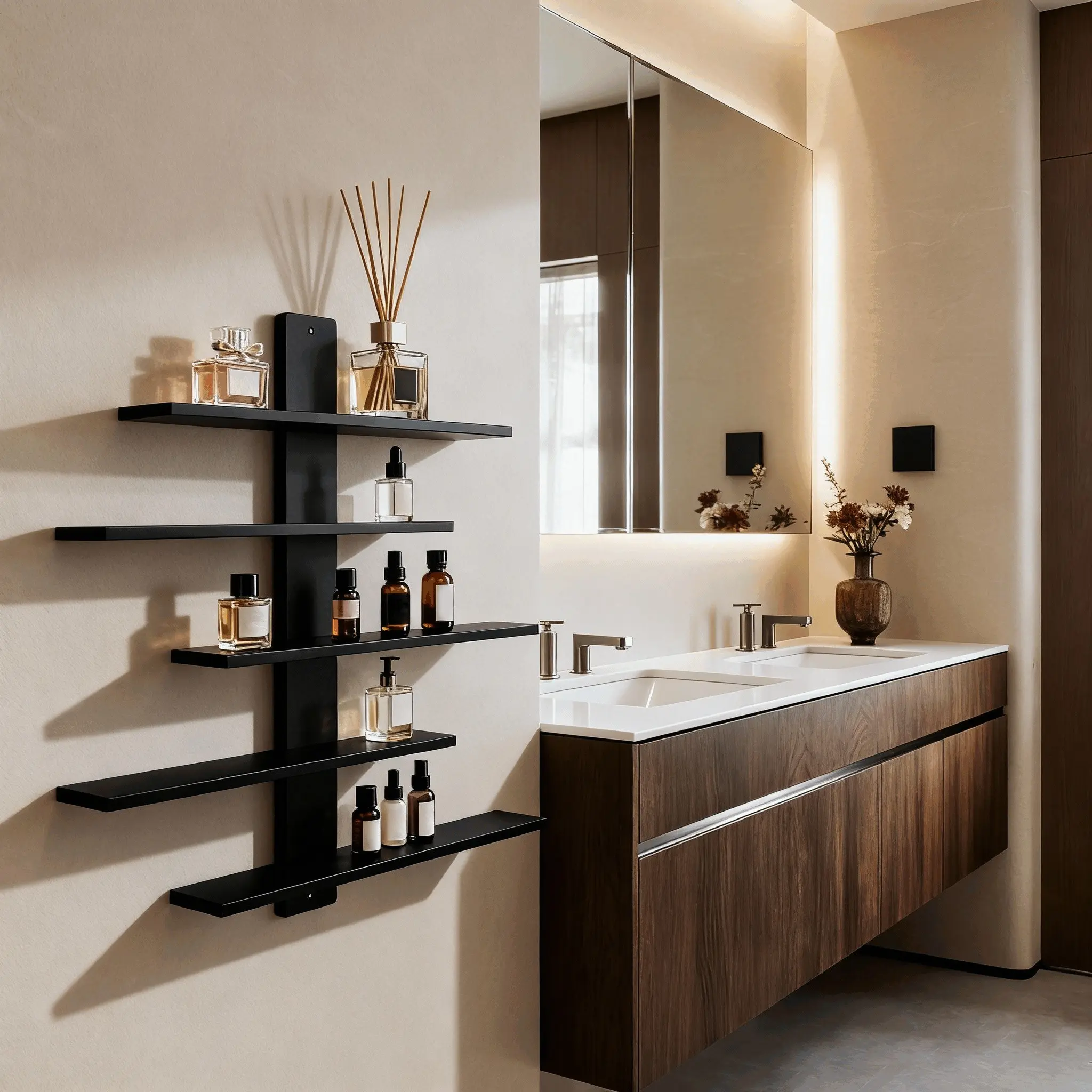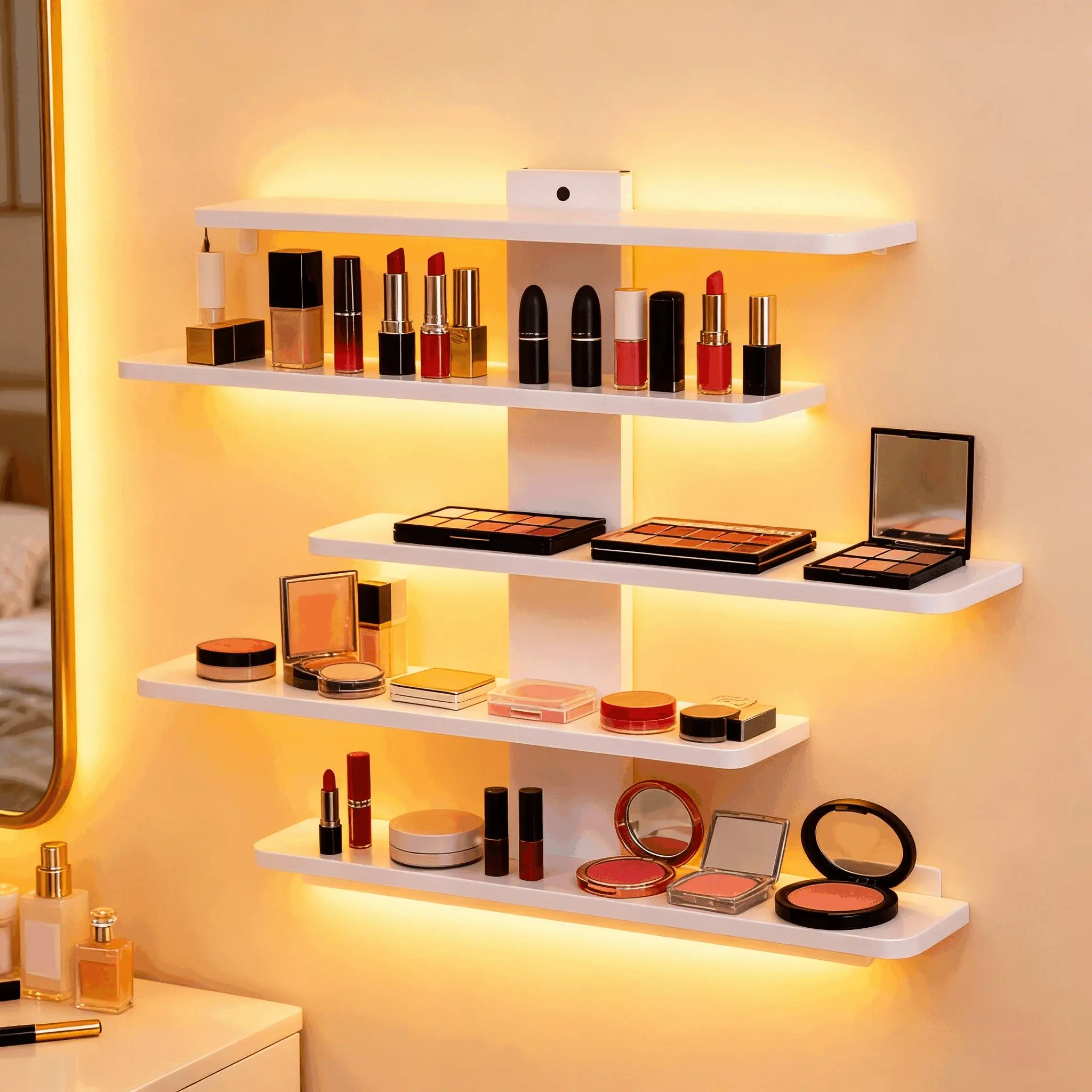 Adjustable Wall Mount Display Shelf, Five-Tier Design, Modern Home Decor Storage Rack, Suitable for Cosmetics, Figurines, Toys