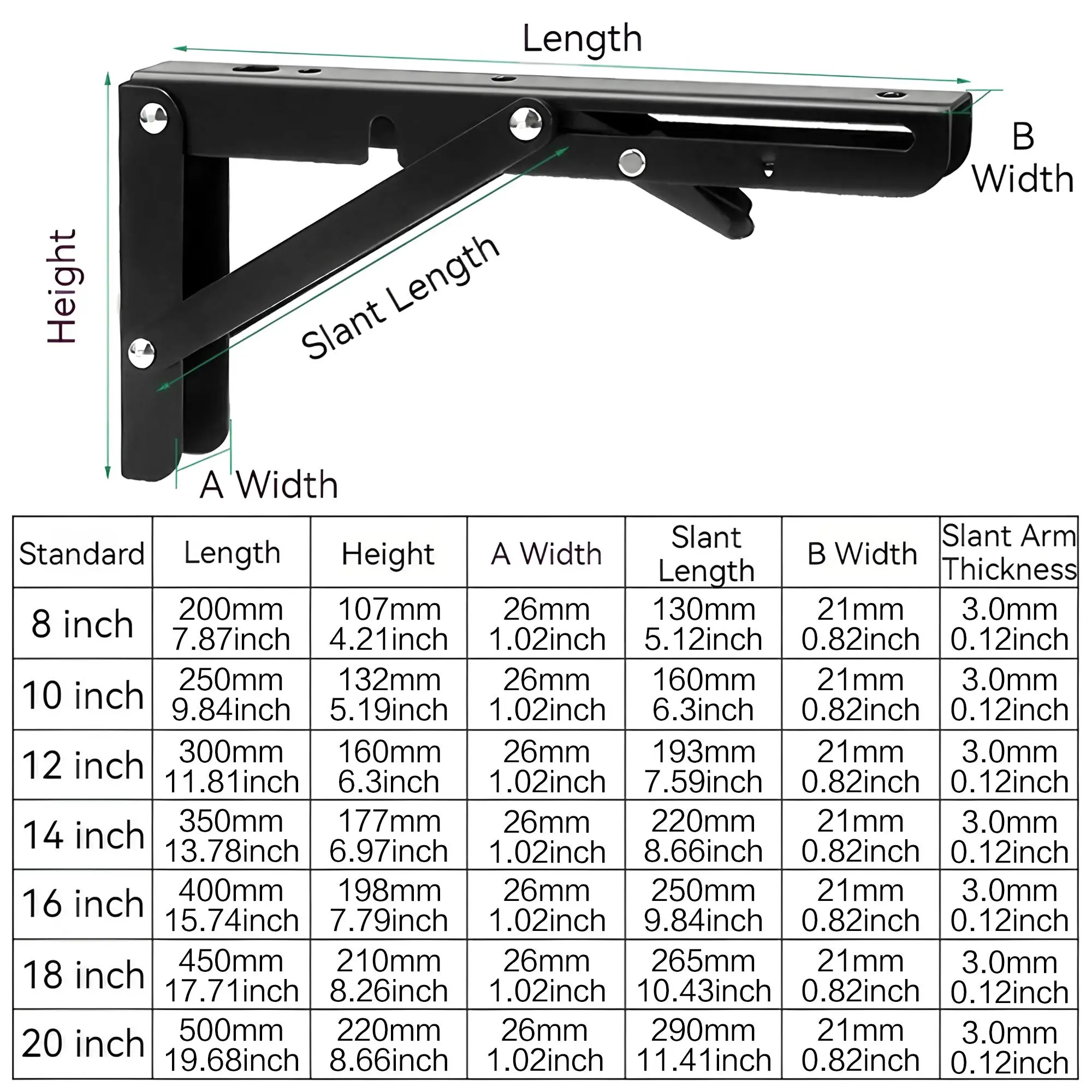 Adjustable Wall Mounted Shelf Bracket, Rustproof Foldable Metal Shelf Bracket, Space Saving Design Shelf Bracket, Home Storage Accessories