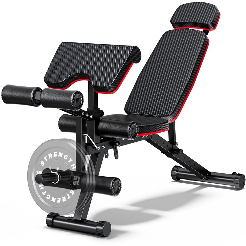 The adjustable weight bench. Featuring 6 customizable components, including adjustable parameter-- backrest (10 levels), headrest (7-9 inches), seat (4 levels), preacher curl pad (3 levels), lower hook feet (2 levels), handle (3 gears) .this workout bench ensures a tailored fitness routine. Crafted from high-quality steel and reinforced with a sturdy triangle structure and safety locks, it provides unwavering stability for all your exercises. With its 2 inches thick high-density foam PU leather construction, this weight bench offers both comfort and durability, supporting up to 900 pounds. Perfect for home gyms, it enables a wide range of workouts targeting chest, shoulders, back, and abdominals. Plus, its built-in transport wheels ensure effortless mobility. Weighing 24.5 kilograms, this fitness essential measures 70.9"D x 20.5"W x 49.2"H.
