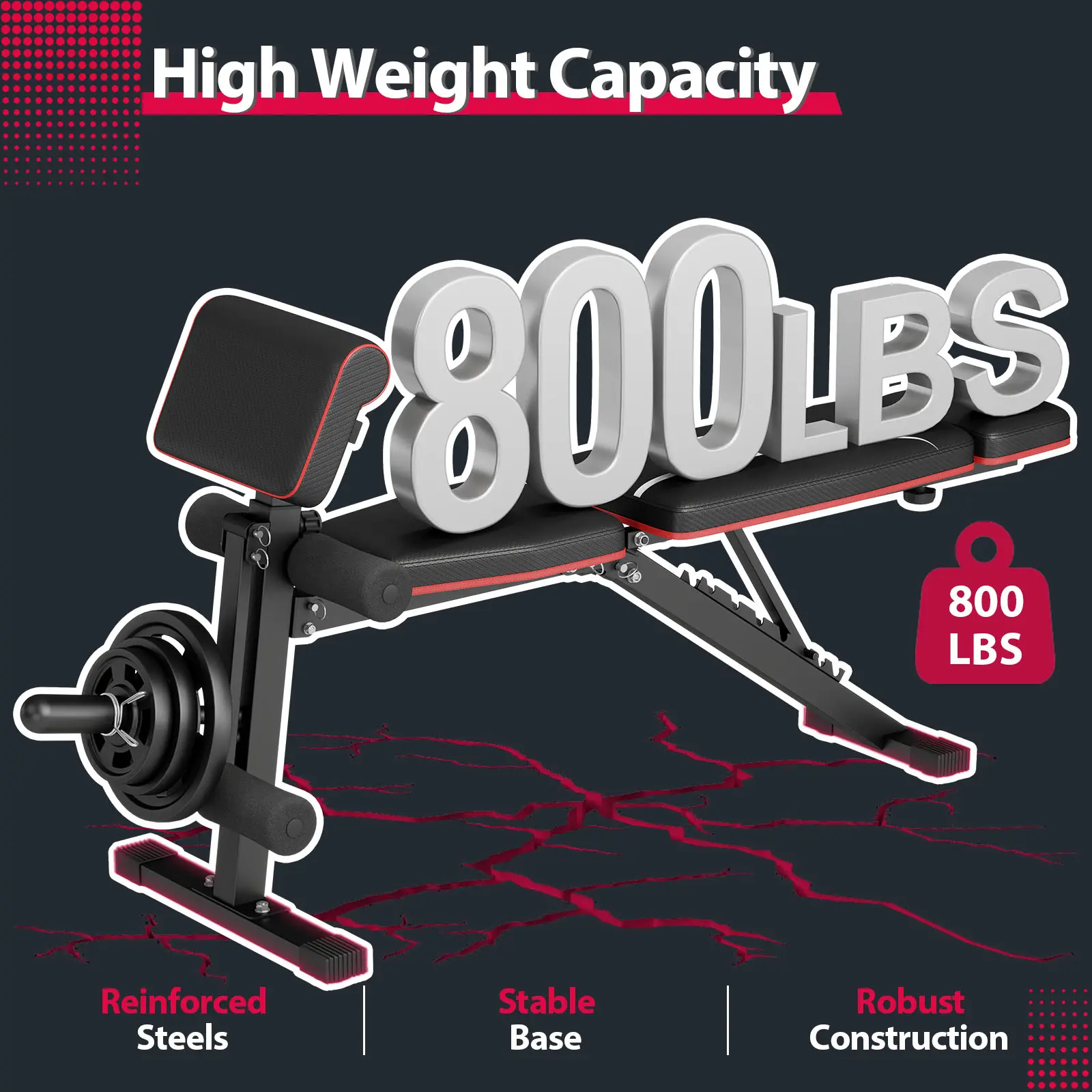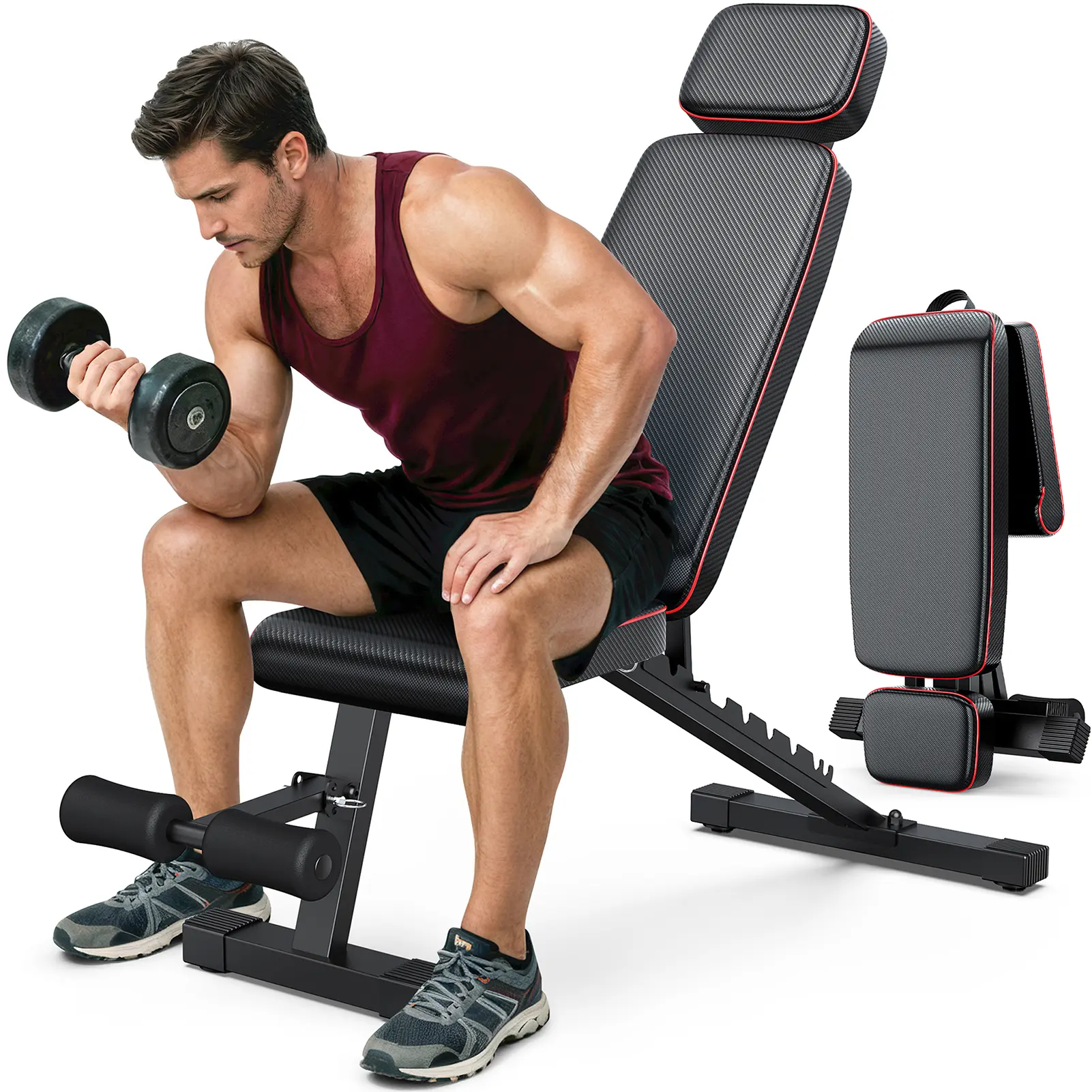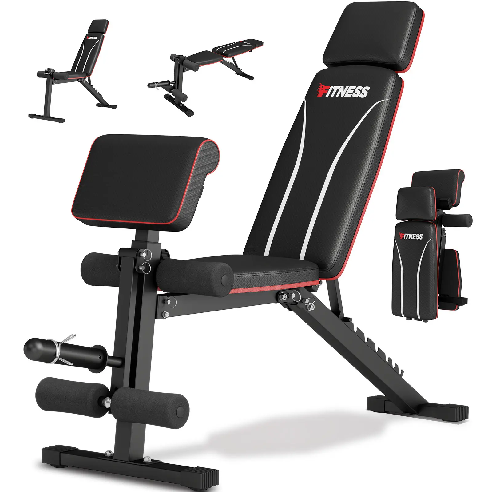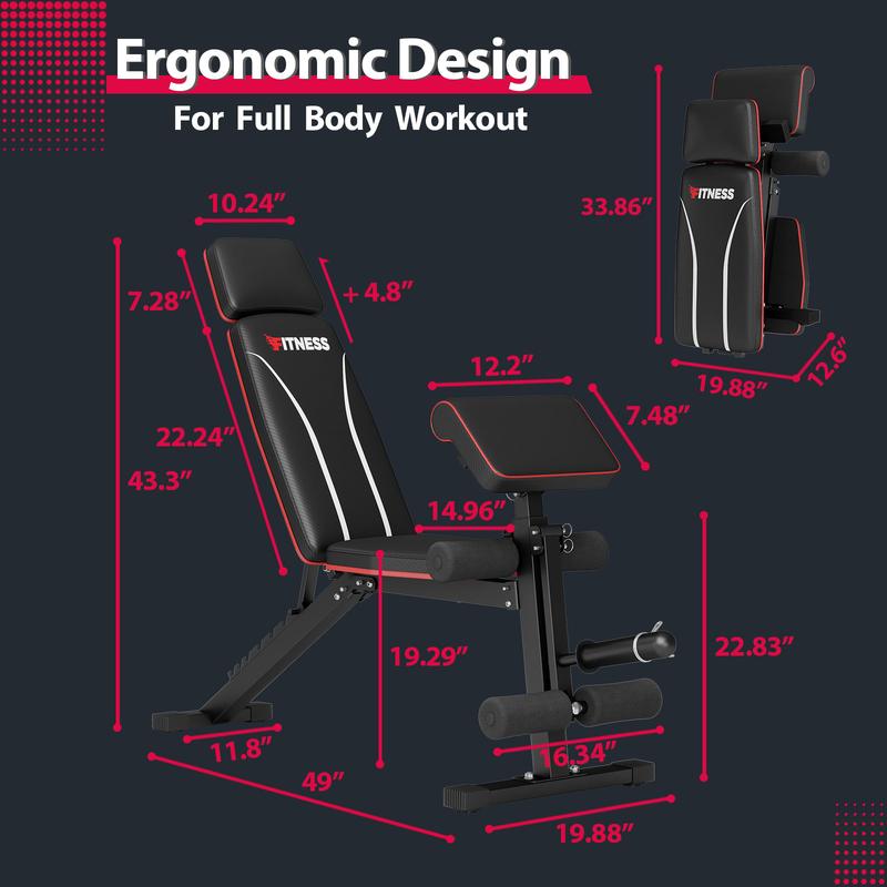 【𝗘𝗻𝗵𝗮𝗻𝗰𝗲𝗱 𝗦𝘁𝗮𝗯𝗶𝗹𝗶𝘁𝘆 & 𝗦𝗮𝗳𝗲𝘁𝘆】This multifunctional weight bench is built with a robust & thick steel frame, the backrest adopts a fixed knob latch, which ensures stability and durability during intense workouts, which withstands up to 770 pounds.