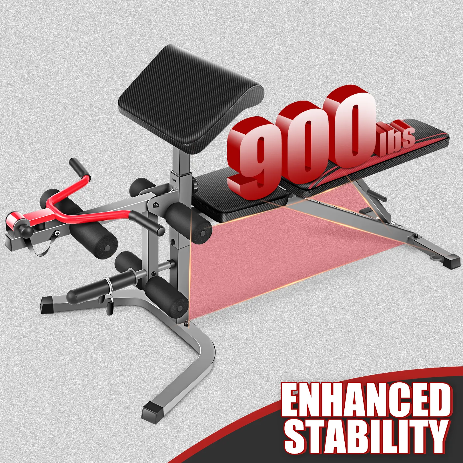 ·【Multi-Functional Training】Ideal for preacher curls, single-arm rows, dumbbell bench presses, leg extensions & curls, delivering comprehensive fitness results.【Sturdy & Stable】Built with a solid metal frame, stable triangular structure and upgraded base (fits uneven floors). Supports up to 800 lbs for safe, stable workouts.