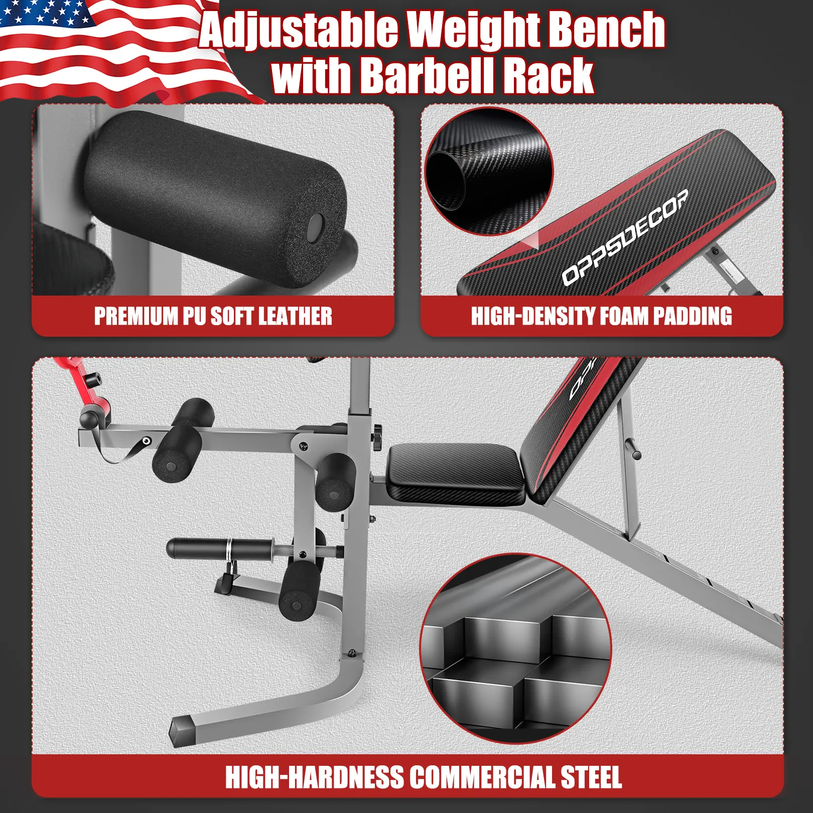 【Service】Our products are all in US warehouse, with friendly 24-hour customer service and 100% satisfaction guarantee. Trust in the durability, portability, and high quality of OppsDecor weight bench.