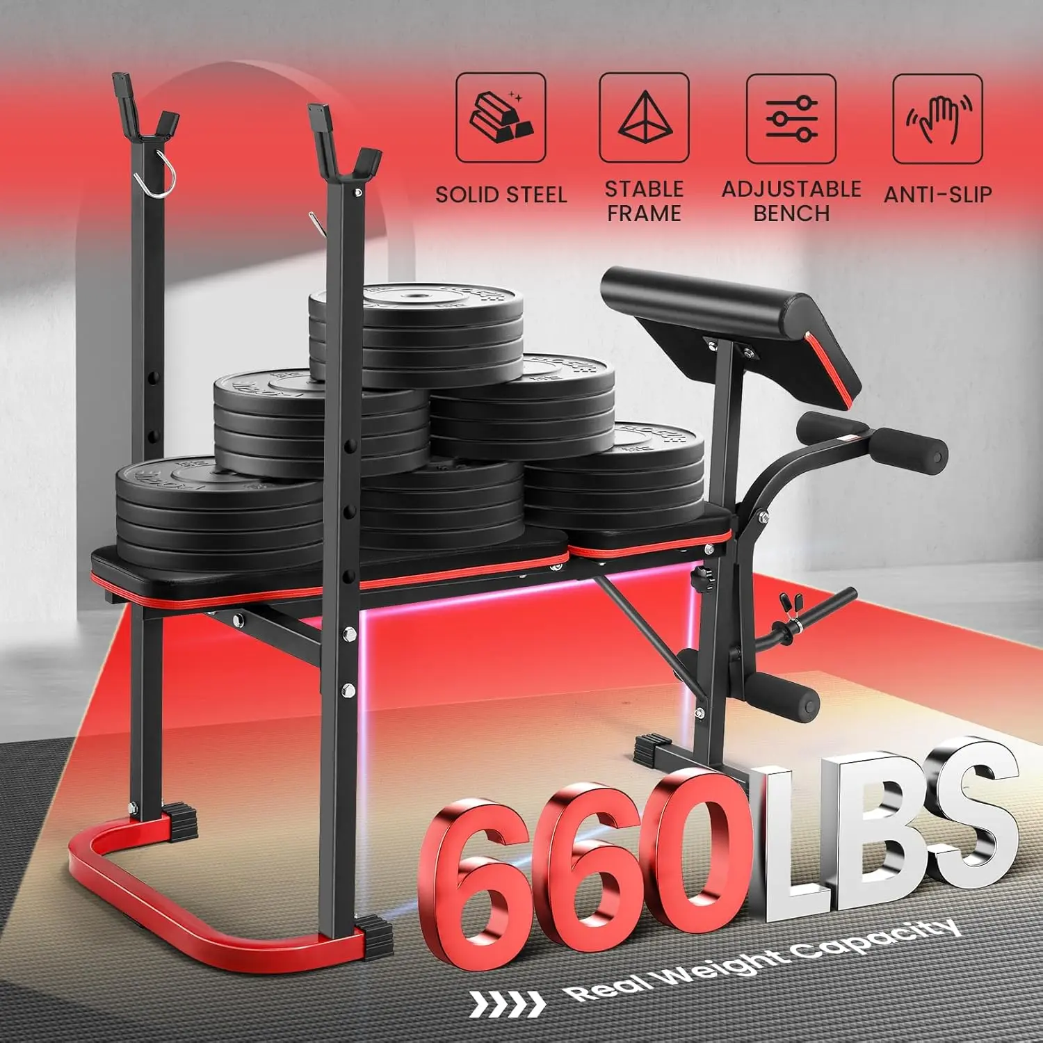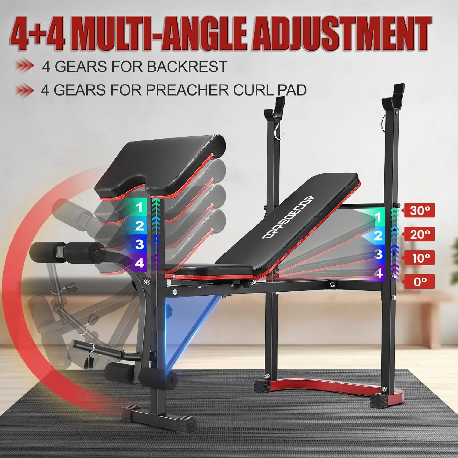 OPPSDECOR Adjustable Weight Bench Set with Leg Developer & Preacher Curl Pad, Full Body Workout Bench Press Set with Squat Rack for Home Gym Fitness, Standard Strength Training Bench