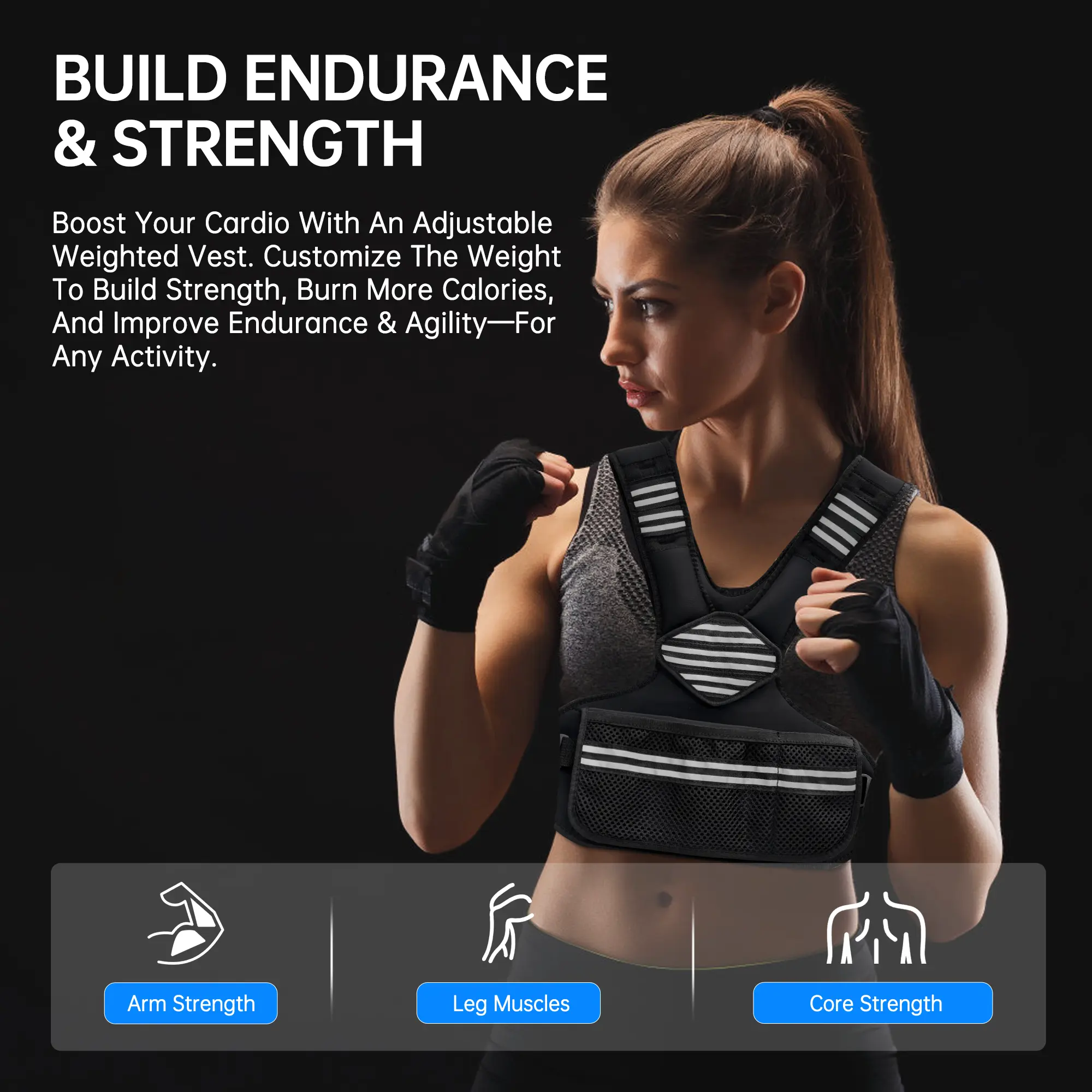Lightweight design: Women's weighted vests are usually lighter than men's vests, and are designed with more emphasis on comfort and flexibility to adapt to the female body curves.