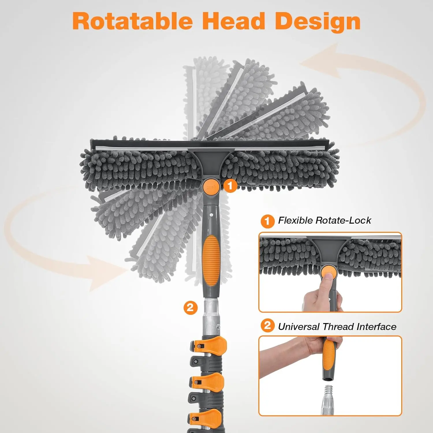 180° Lockable Pivoting Head: Cleans all angles, corners & curved glass easily