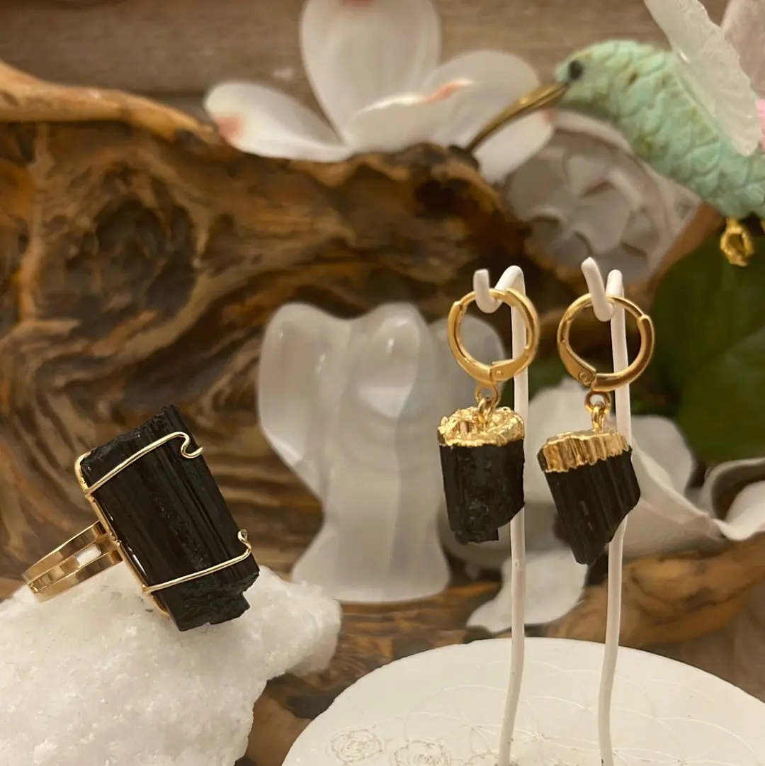 Materials- Black Tourmaline: High- Quality 18K Gold Plated or Titanium- Dipped Brass