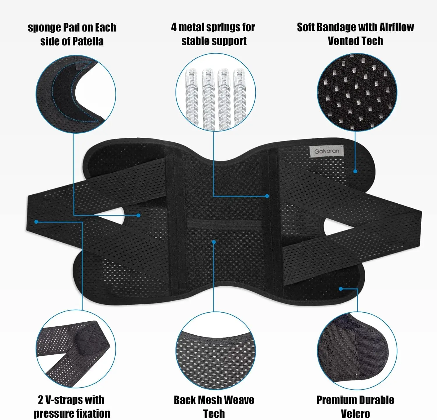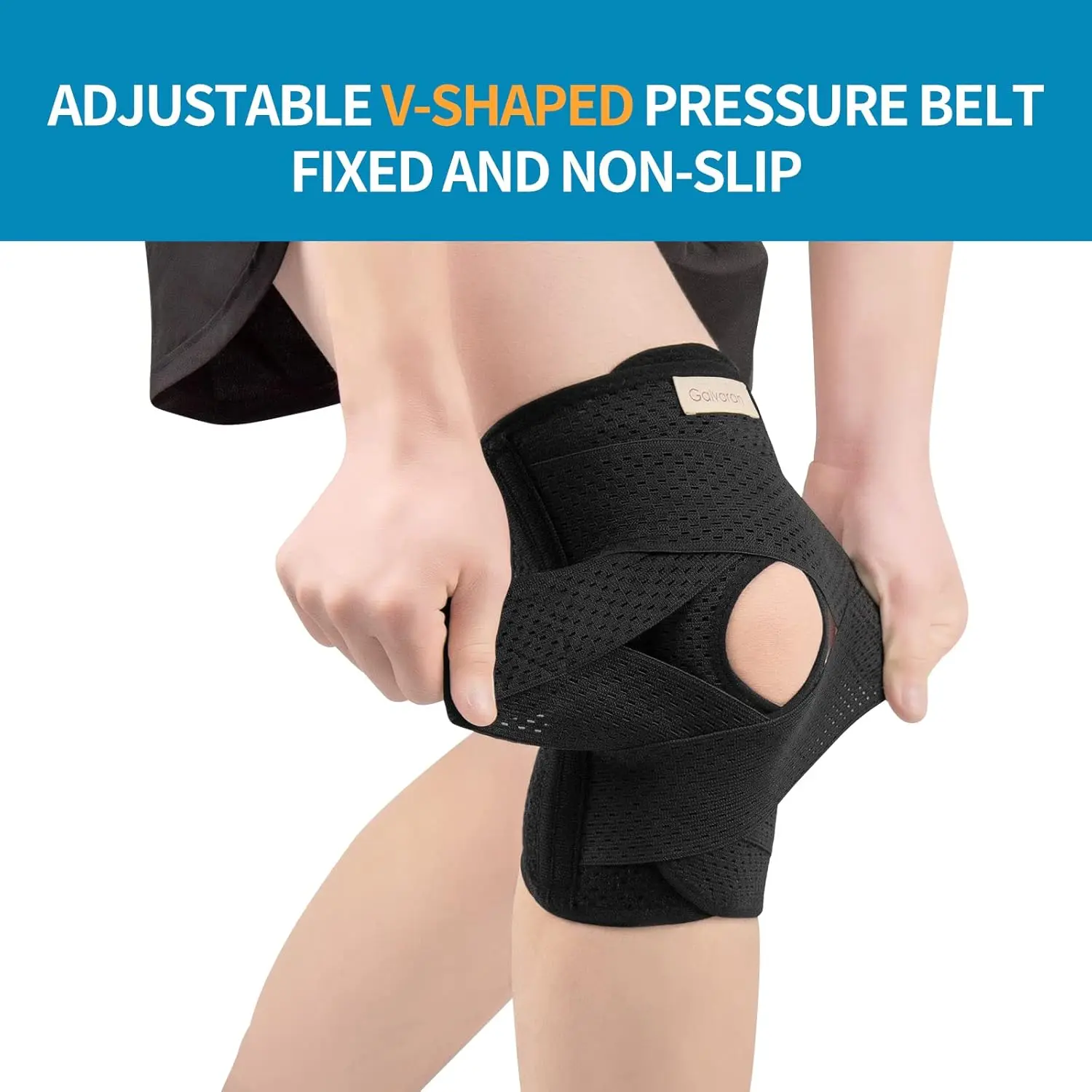 ·【Innovative Design, Comfortable Support】The curves on both sides of the knee brace are ergonomically designed. The center of the patella has an open design, allowing the knee brace to fit perfectly with the knee joint. Upgrade the defects of similar products, carefully designed two V-shaped adjustable pressure belts, not easy to slide, you can adjust the tightness according to your choice, feel the most suitable support for you, and fix the pressure on your knees, very comfortable and Not bulky