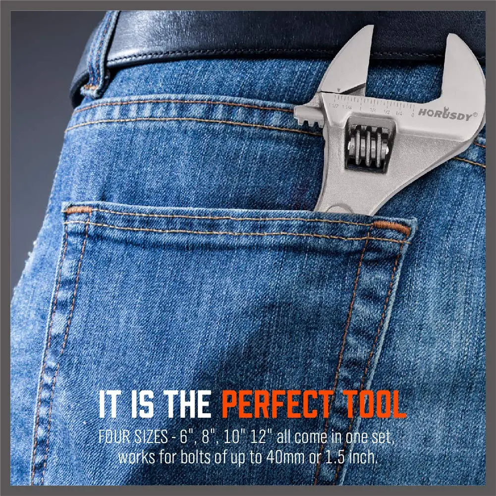 5. HORUSDY 4-Piece Adjustable Wrench Set, CR-V Steel, Crescent Wrenches Set(6-inch, 8-inch, 10-inch, 12-inch) home improvement universal hand combination wrench crescent wrench Metric Socket adjustable wrench