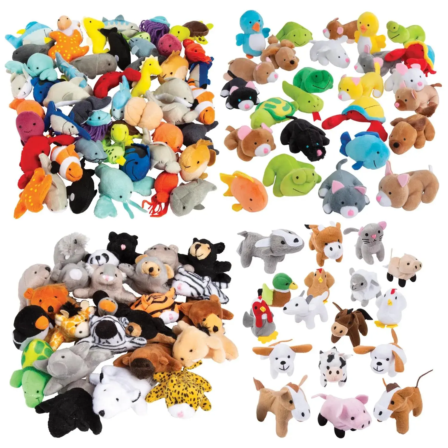 • KIDS WILL LOVE THESE MINI STUFFED ANIMALS: Perfect for gifts and prizes.br• VARIETY OF CUTE STUFFIES: Includes farm, pet, and sea life themes.br• GREAT FOR CLASSROOMS AND EVENTS: Perfect as rewards and giveaways.br• HIGH-QUALITY AND DURABLE: Soft and cuddly companions for kids.brbrProduct Description:brThese delightful mini stuffed animals are sure to capture the hearts of children! Ranging from 3 1/2" to 4", these plush toys are perfect for classroom rewards, community giveaways, or fun zoo-themed events. Their compact size makes them ideal pocket pals that kids will cherish.brOriental Trading is your one-stop shop for fun and engaging supplies that make any occasion special!brbrSize: 3 1/2" - 4" brQuantity: 192 brMaterial: Plush