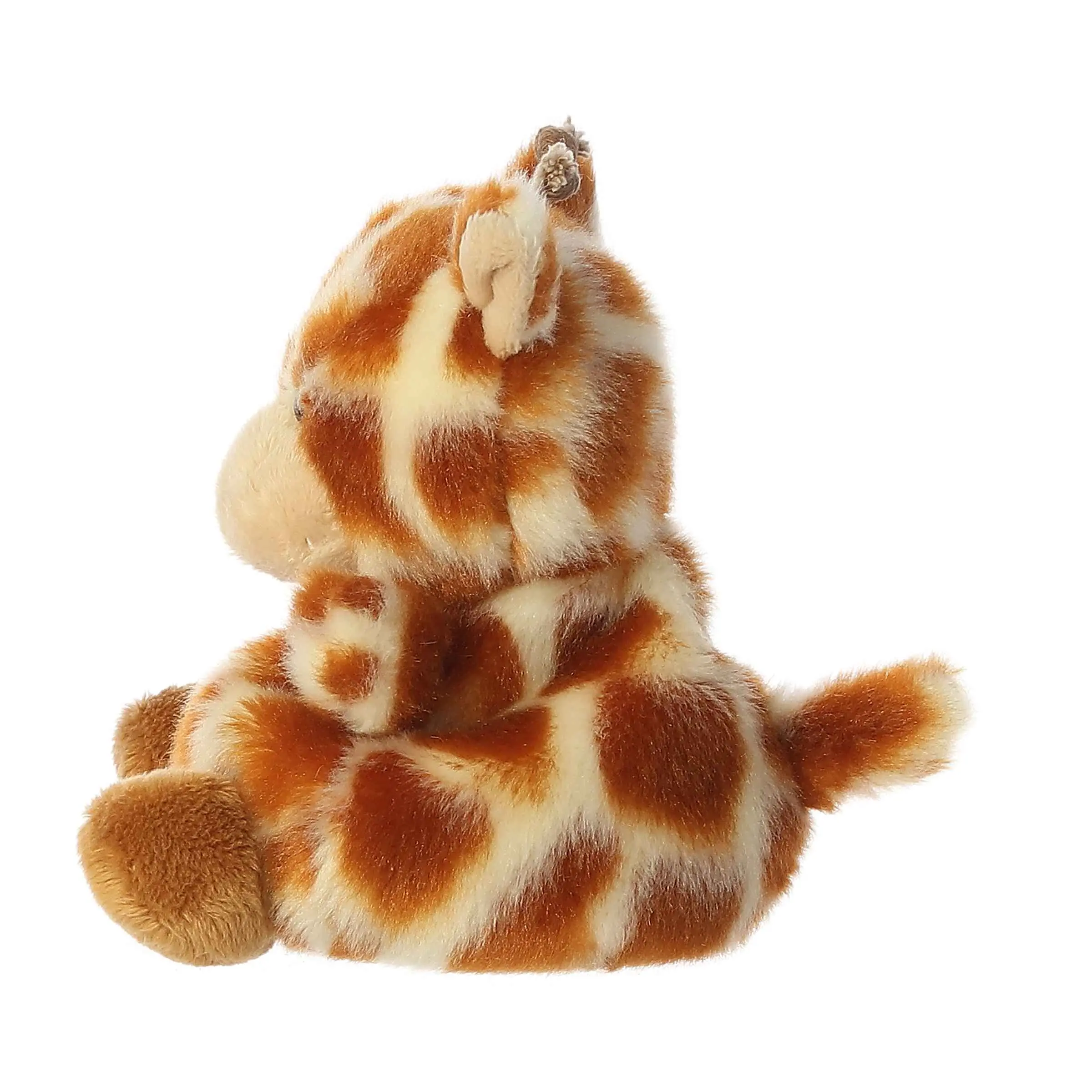 Safara Giraffe from Palm Pals features a soft, plush body with an adorable giraffe pattern of warm brown and creamy white spots. Its cute little horns, expressive eyes, and gentle smile make it a perfect cuddle buddy. Safara Giraffe adds a touch of the wild to any plush collection, providing comfort and playful charm to plush enthusiasts of all ages.