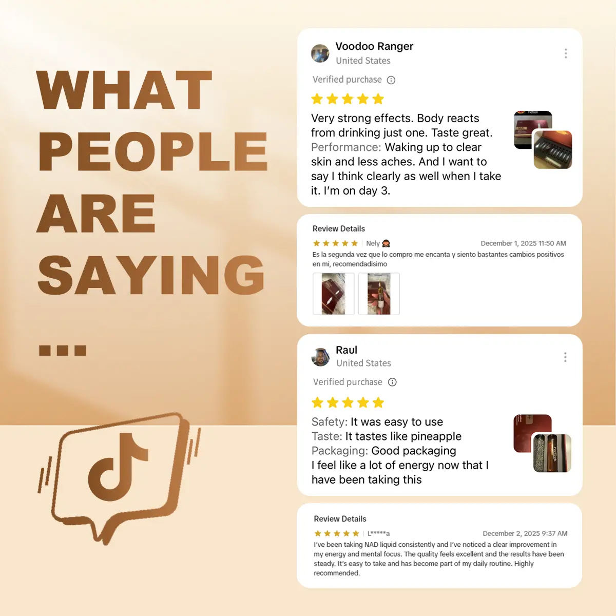 I've been taking NAD+ for a week. I bought three boxes and will buy three more. Let's wait for the results. I read that a continuous treatment of nine boxes of NAD+ is recommended. I will follow the instructions. Now all that's left is to wait for the results.
