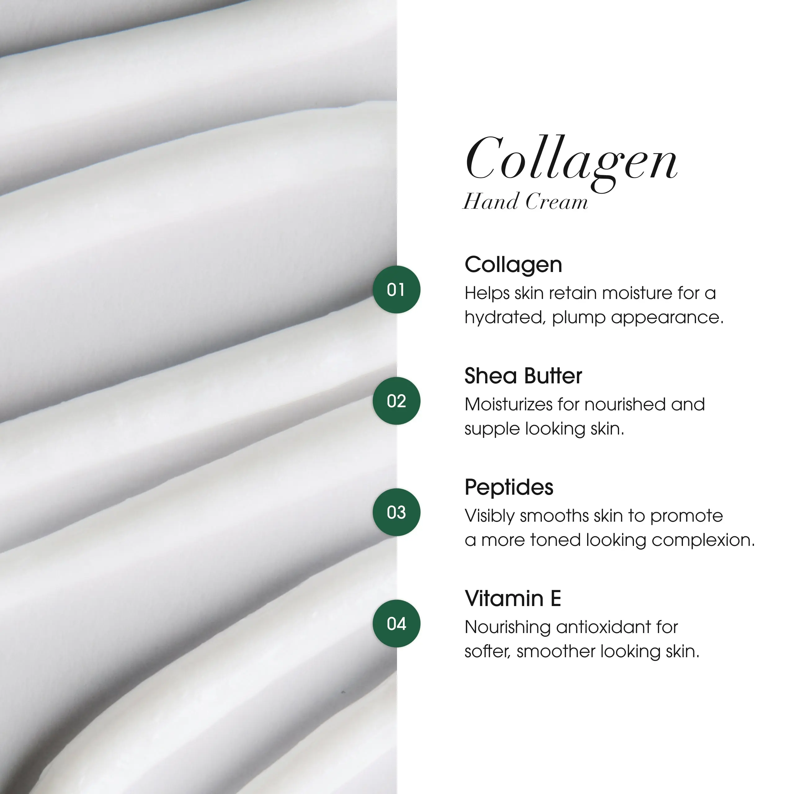 Our Advanced Clinicals Collagen Hand Cream is a rich, non-greasy formula that instantly soothes, softens and hydrates dry skin. Formulated with Aloe Vera, and Shea Butter to help rescue dry, chapped skin. This nutrient-rich collagen moisturizer improves the look of wrinkles, while promoting younger-looking hands. 100% Clean Beauty and Made in USA.