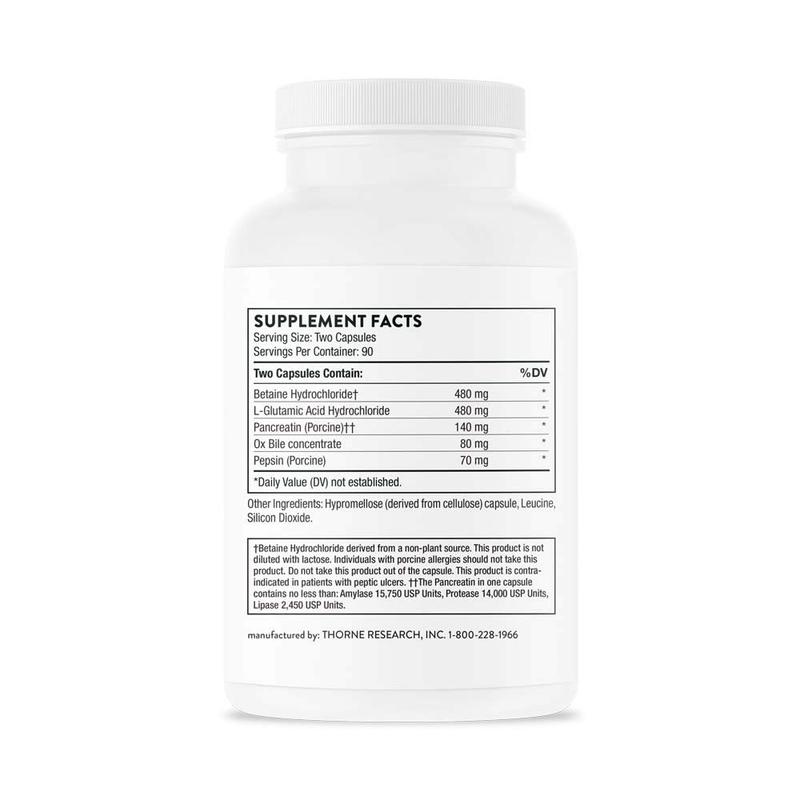 ·HCl promotes the body’s absorption of multiple nutrients, including folate, vitamin B12, vitamin C, beta-carotene, iron, and various forms of calcium, magnesium, and zinc*