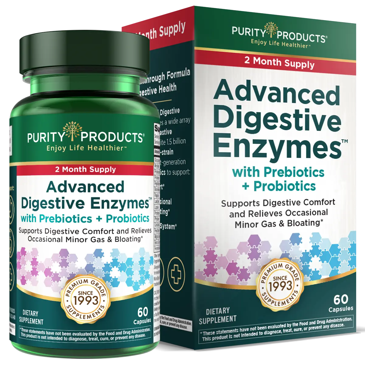 With a full 2-month supply in each bottle, Purity’s Advanced Digestive Enzymes offers a clean, effective, and convenient solution for those seeking daily digestive wellness. If you’re looking for relief from occasional bloating, better digestion, and a more balanced gut, this triple-action formula is your daily ally for digestive health and beyond.