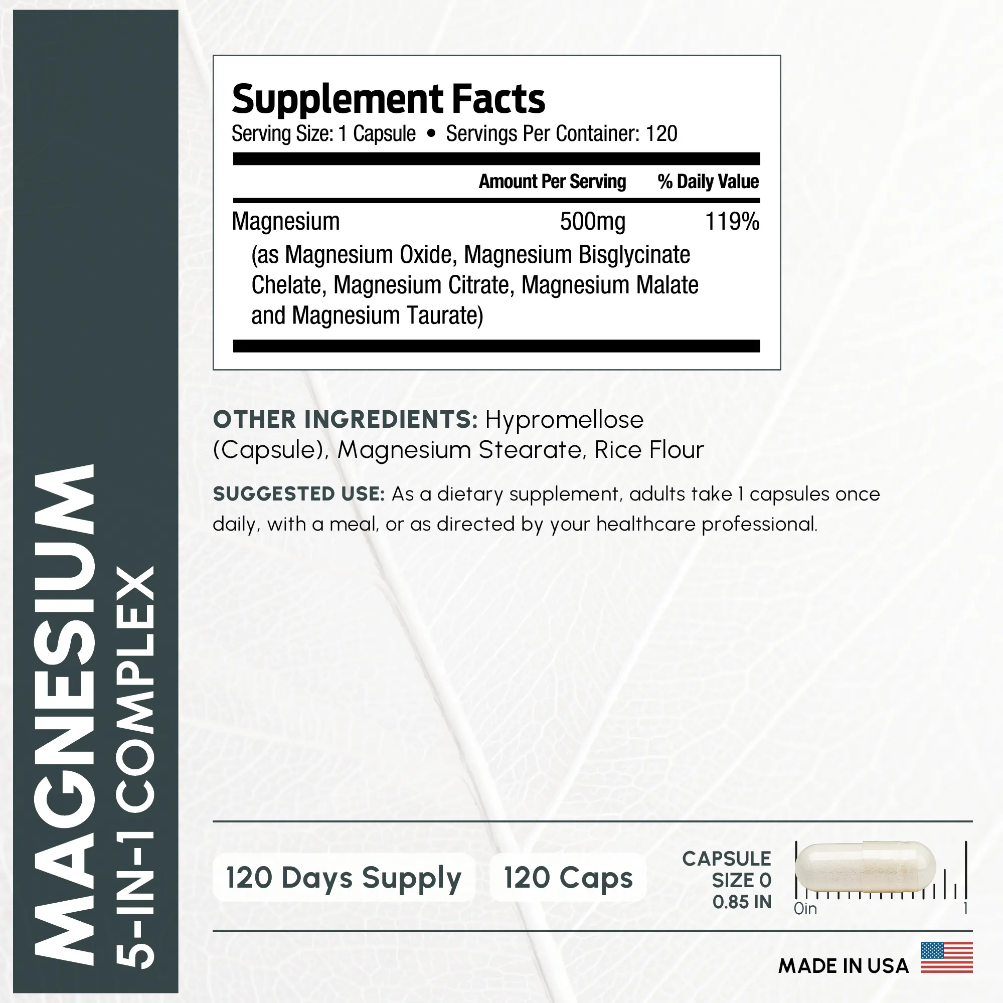 ·5 IN 1 COMPLETE FORMULA - Get more results, faster, and obtain the full spectrum of benefits that magnesium has to offer the brain and body. Enjoy this formula featuring 5 different types of magnesium in a single easy-to-take capsule. One bottle lasts 4 months.