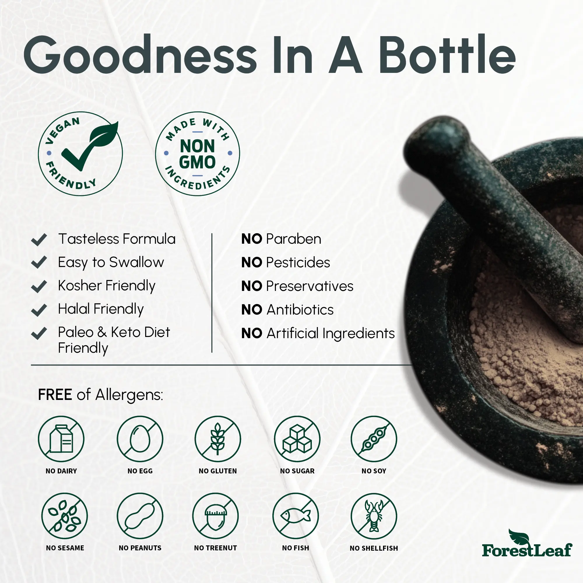 ·THRIVING EVERY DAY WITH FORESTLEAF - Health Focused. Quality Committed. Research Driven. Our mission is to provide high-quality supplements that support health and wellness. We believe that nature provides us with everything we need to thrive. At ForestLeaf, we are committed to helping you live your best life. This supplement is made in the USA in a GMP compliant facility and independently lab verified and tested for absorption. Non GMO. Dairy, Egg, Nut & Gluten Free.
