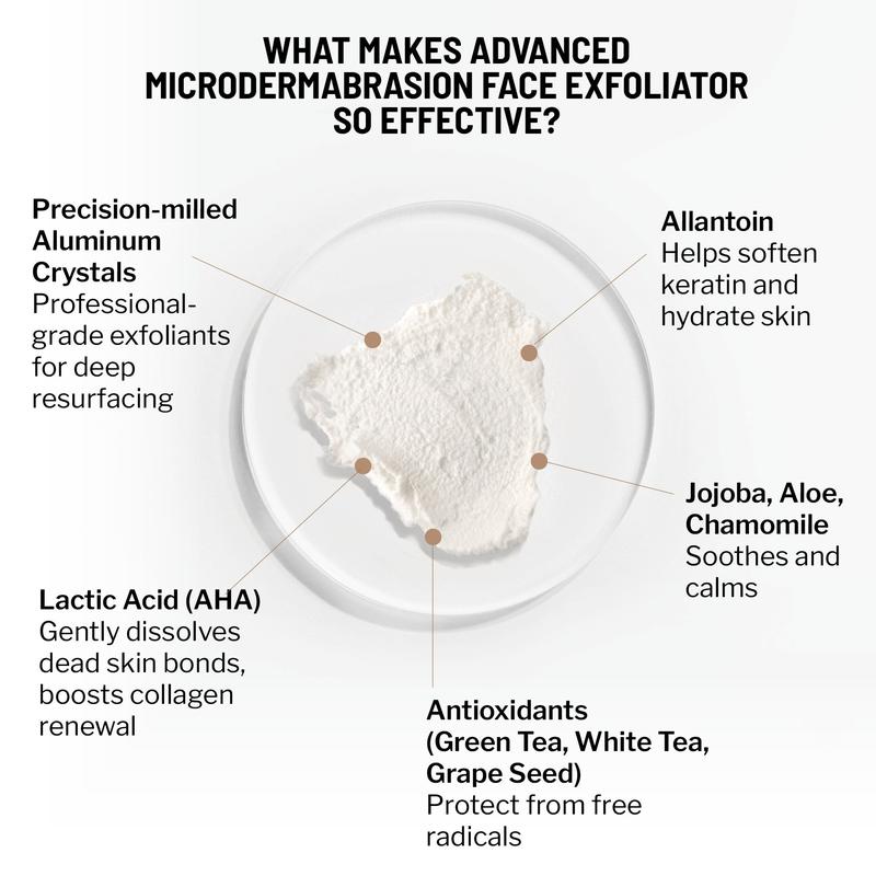 Inspired by one of Dr. Brandt’s signature in-office procedures, this advanced exfoliator mimics clinical microdermabrasion with a dual-action formula: spa-grade aluminum oxide crystals provide physical exfoliation to buff away dead skin cells, while lactic acid chemically resurfaces to improve texture, tone, and radiance. A blend of soothing botanicals calms the skin, while allantoin and antioxidants nourish and support skin renewal. Ideal for targeting signs of aging, dullness, dark spots, uneven skin tone, and rough texture—including acne scars and fine lines.