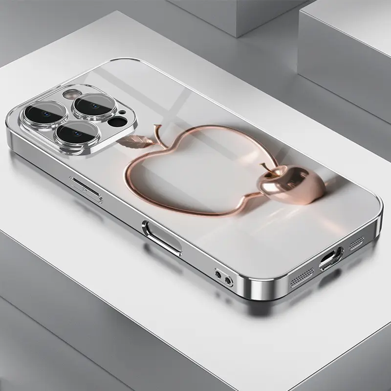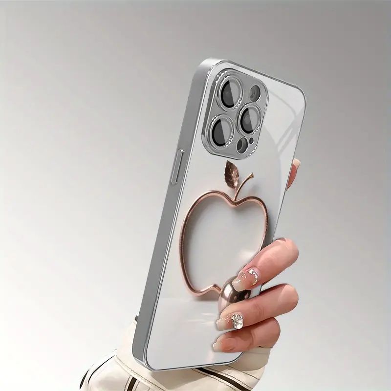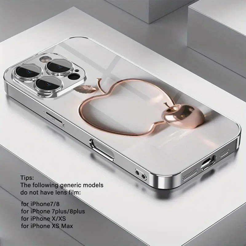 Advanced Multi-Functional Metal Apple Pattern Electroplated TPU Phone Case with Lens Protection for iPhone 16/16Pro/16ProMax/16Plus/16e, 15/15Plus/15Pro/15ProMax, 14/14Plus/14Pro/14ProMax, 13/13Pro/13ProMax, 12/12Pro/12ProMax, 11/11Pro/11ProMax, 7/8plus,