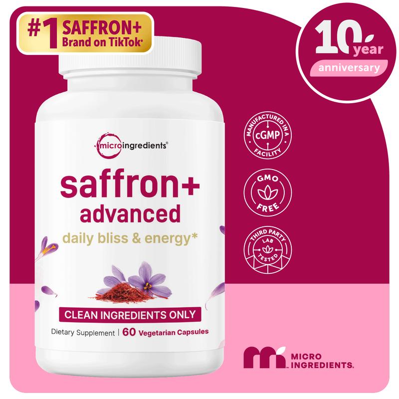 ·Micro Ingredients offers a pure 10-in-1 Saffron+ Advanced complex made with freshly harvested saffron flower extract, naturally rich in safranal, and crafted with clean ingredients without fillers.