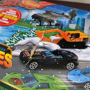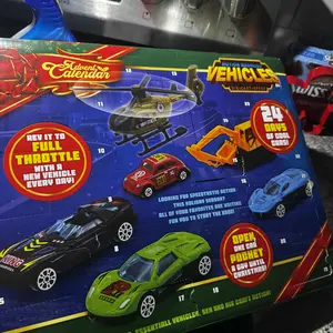 The cover of the advent calendar is not very tight so all of the cars and everything have fell out of their spots. Some days has 2 or more cars and some days have 0 cars. Also SKIPPED day 7. 100% would not recommend