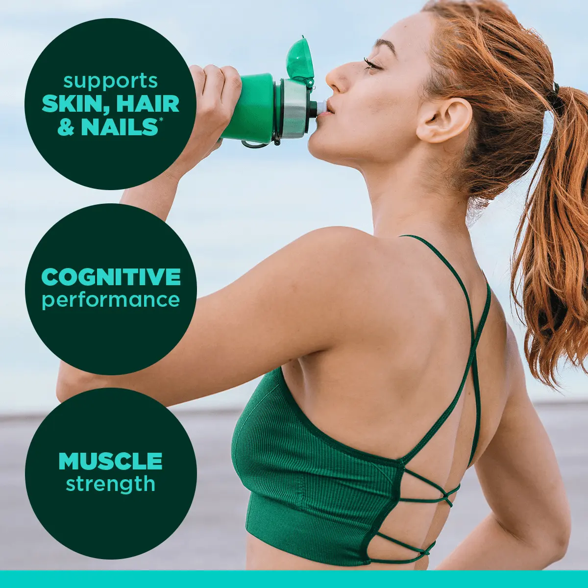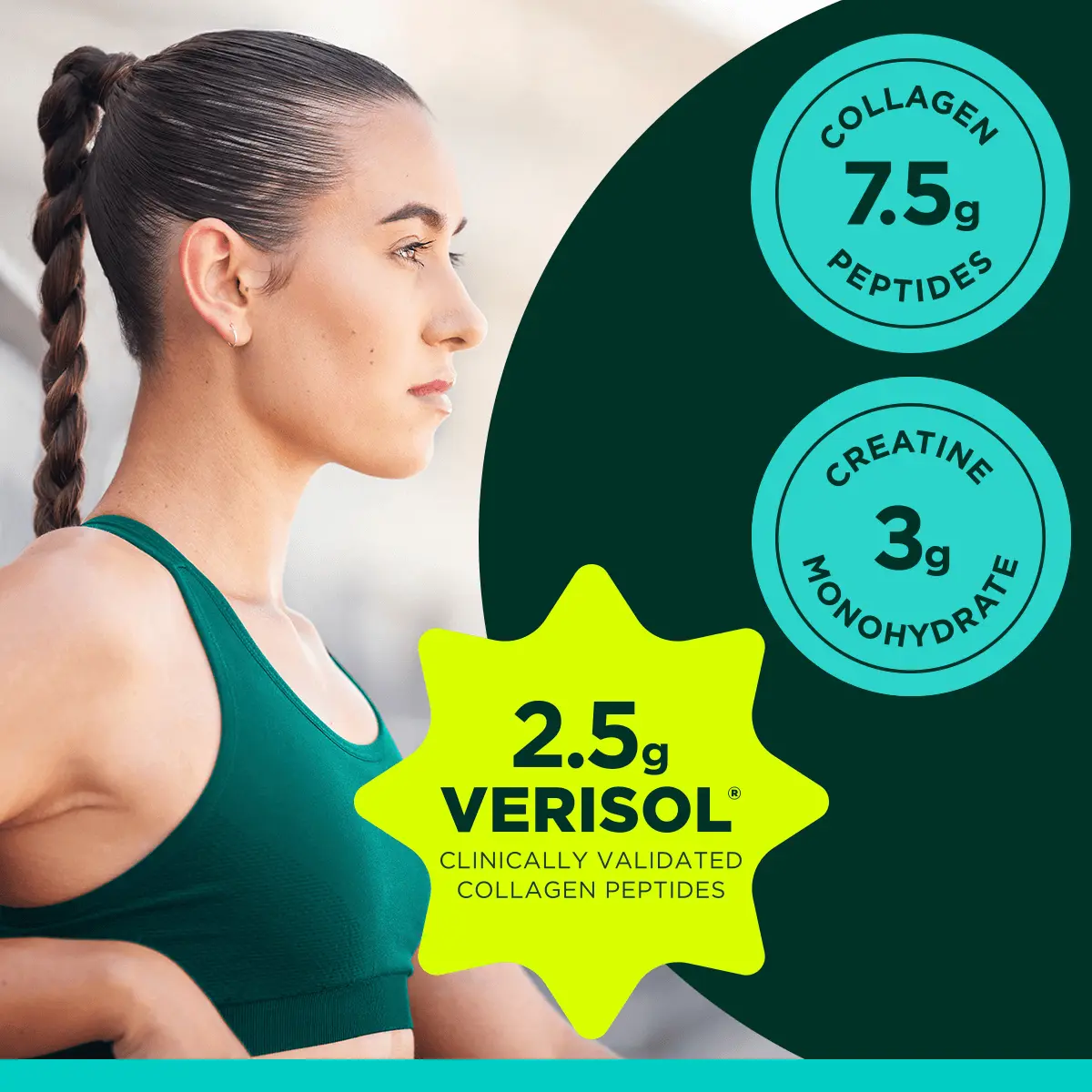 Collagen + Creatine is a science-backed solution to help active people move stronger, think sharper, and glow brighter every day. Unflavored and easily mixable, Collagen + Creatine is the perfect supplement to mix into your daily routine.For best results, consistency is key. Creatine works best when taken daily to maintain muscle saturation, and collagen supports connective tissue with continued, long-term use.When to use:Take it daily — ideally in the morning or after your workout (even on rest days) — for steady support and better long-term results.Who is Collagen + Creatine for? Collagen + Creatine is designed for individuals who want to support natural collagen production for graceful aging\r\nBusy performers who want one product that supports healthy aging and cognitive performance\r\nThose focused on strength, looking and feeling good as they age and want a simple solution to add into their existing routine\r\nWhat sets us apart?VERISOL® Bioactive Collagen Peptides (2.5g) is expertly designed to support collagen production for skin, hair, and nails. It's the most scientifically studied collagen peptide for beauty benefits. Clinically validated and trusted by millions worldwide, VERISOL® delivers visible results with a daily dose as low as 2.5g.With regular supplementation, VERISOL® is clinically studied to support;\r\nEnhance skin elasticity, leading to a more youthful appearance\r\nReduce the appearance of wrinkles and fine lines\r\nBoost skin hydration levels\r\nNourish hair and support strong healthy nailsSourced from bovine.Grass-Fed Bovine Collagen Peptides (5g) support joint integrity, tendon and ligament resilience, and bone strength.Creatine Monohydrate (3g) is backed by decades of research for muscle strength, endurance and recovery while also supporting brain energy and cognitive performance under stress or fatigue.