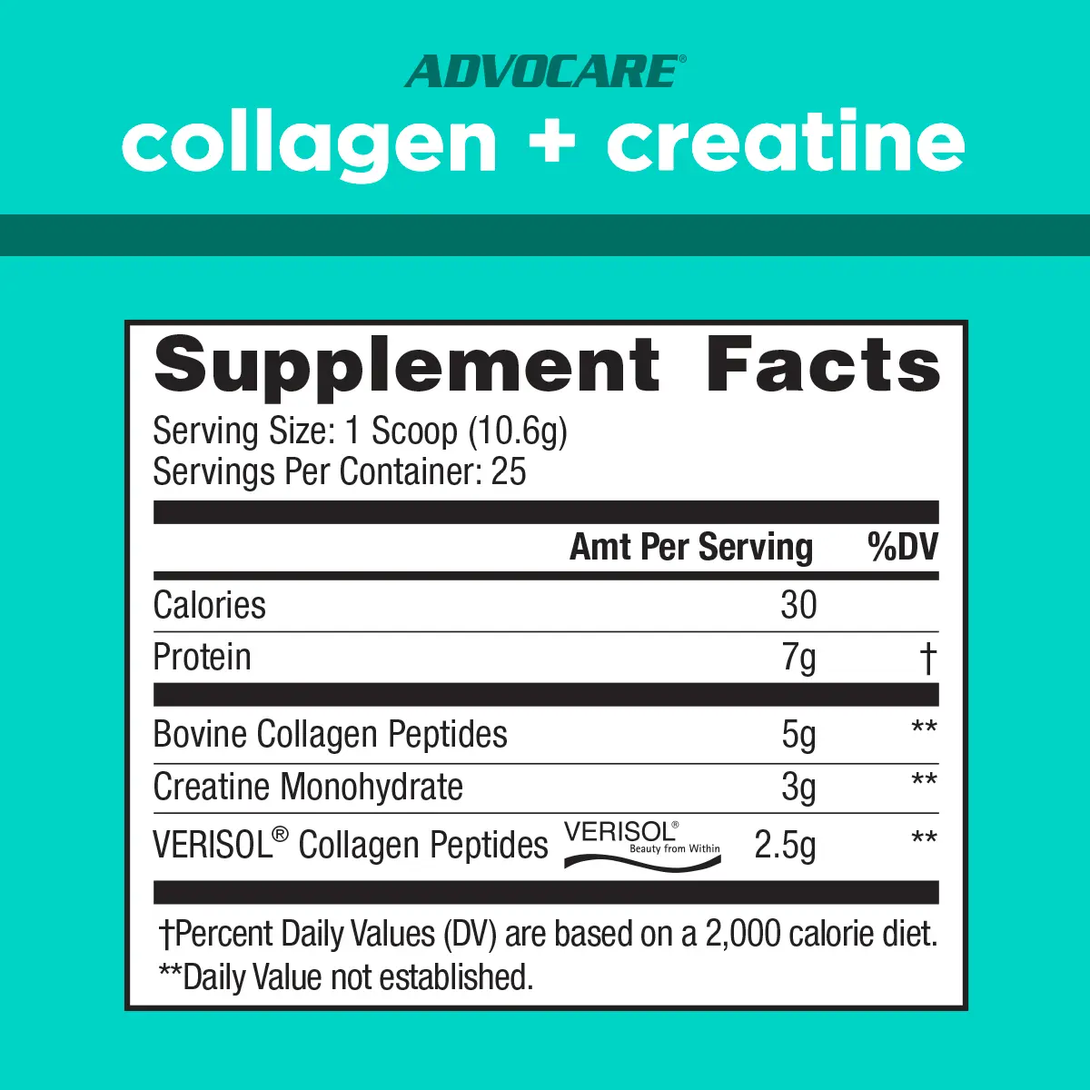 AdvoCare Collagen + Creatine is a science-backed, multifunctional daily supplement designed to support strength, recovery, cognition, joint health, and beauty all in one scoop! With clinically studied collagen peptides and research-backed creatine, this unflavored formula stacks seamlessly into your daily routine. #creatineandcollagen #advocarespark @AdvoCare