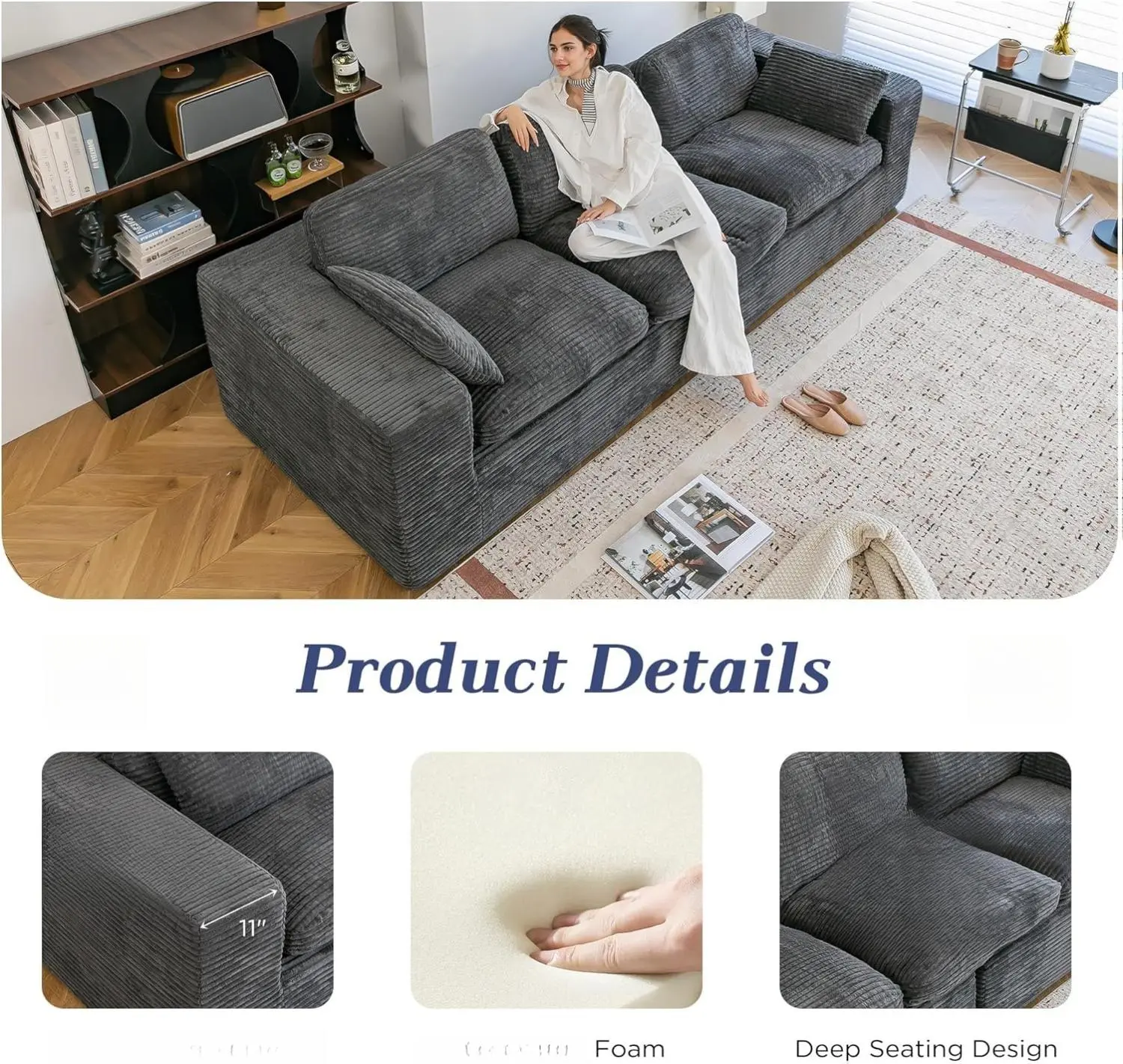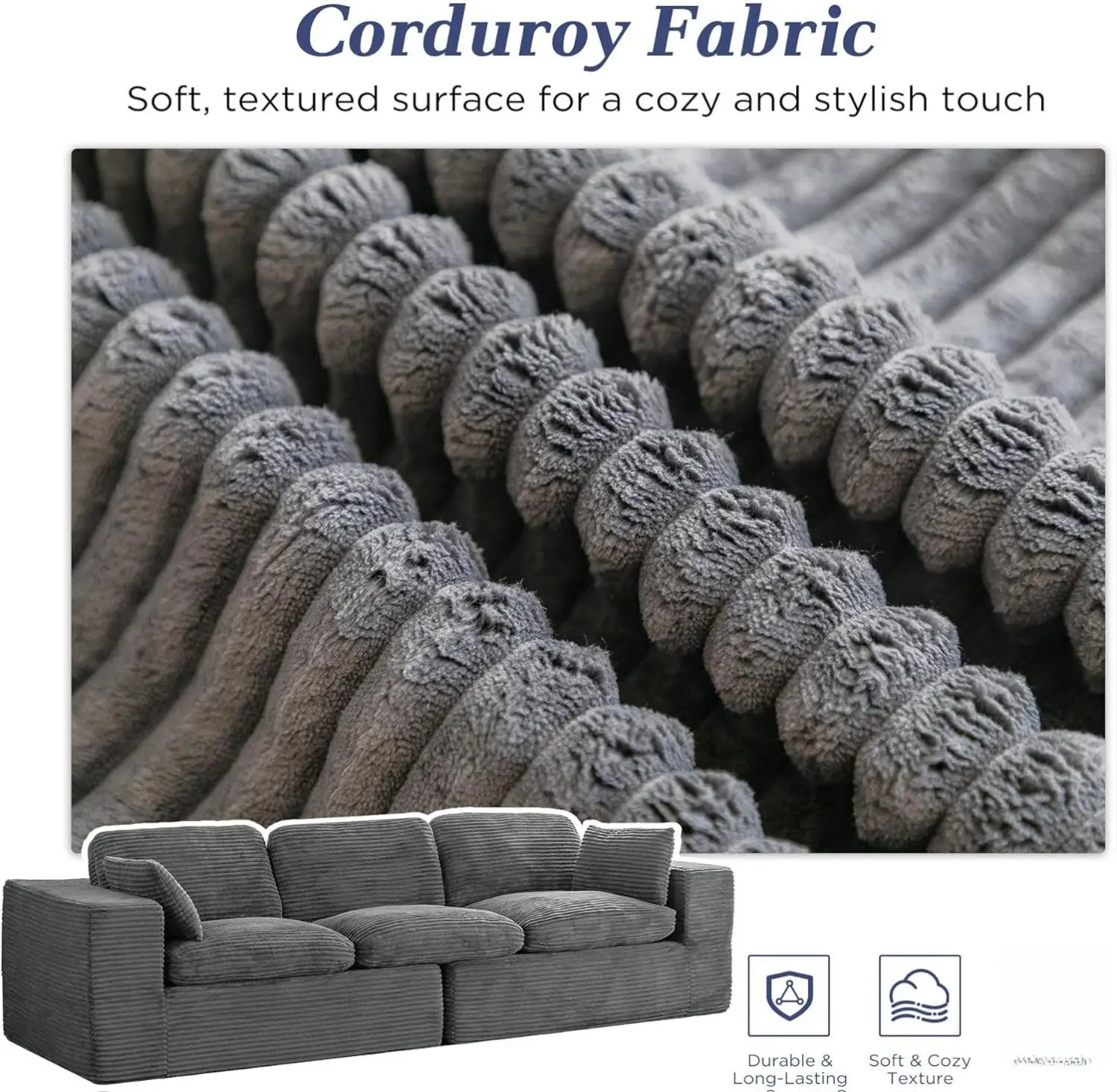 ·Plush Corduroy Fabric: This couch is crafted from plush corduroy, featuring an ultra-soft, cozy, and durable fabric with a stylish ribbed texture. It is both comfortable and easy to maintain. 🧵