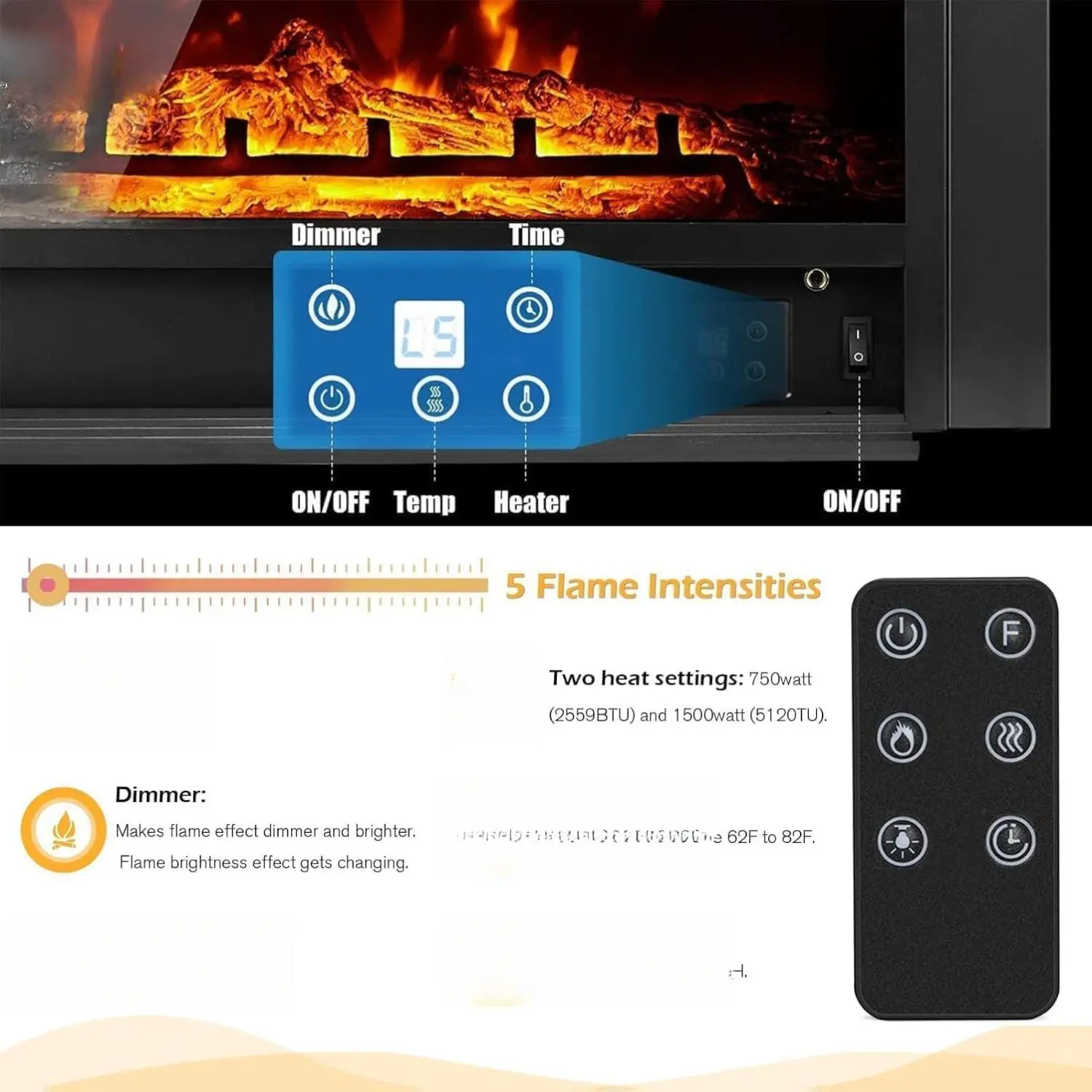 Safe & Comfortable 🌟 - Log Flame Effect: Provides a realistic fireplace experience. - 3 Flame Colors: Offers different flame brightness settings. - Safe Technology: Uses the latest technology, saving time and effort. No messy or harmful products.