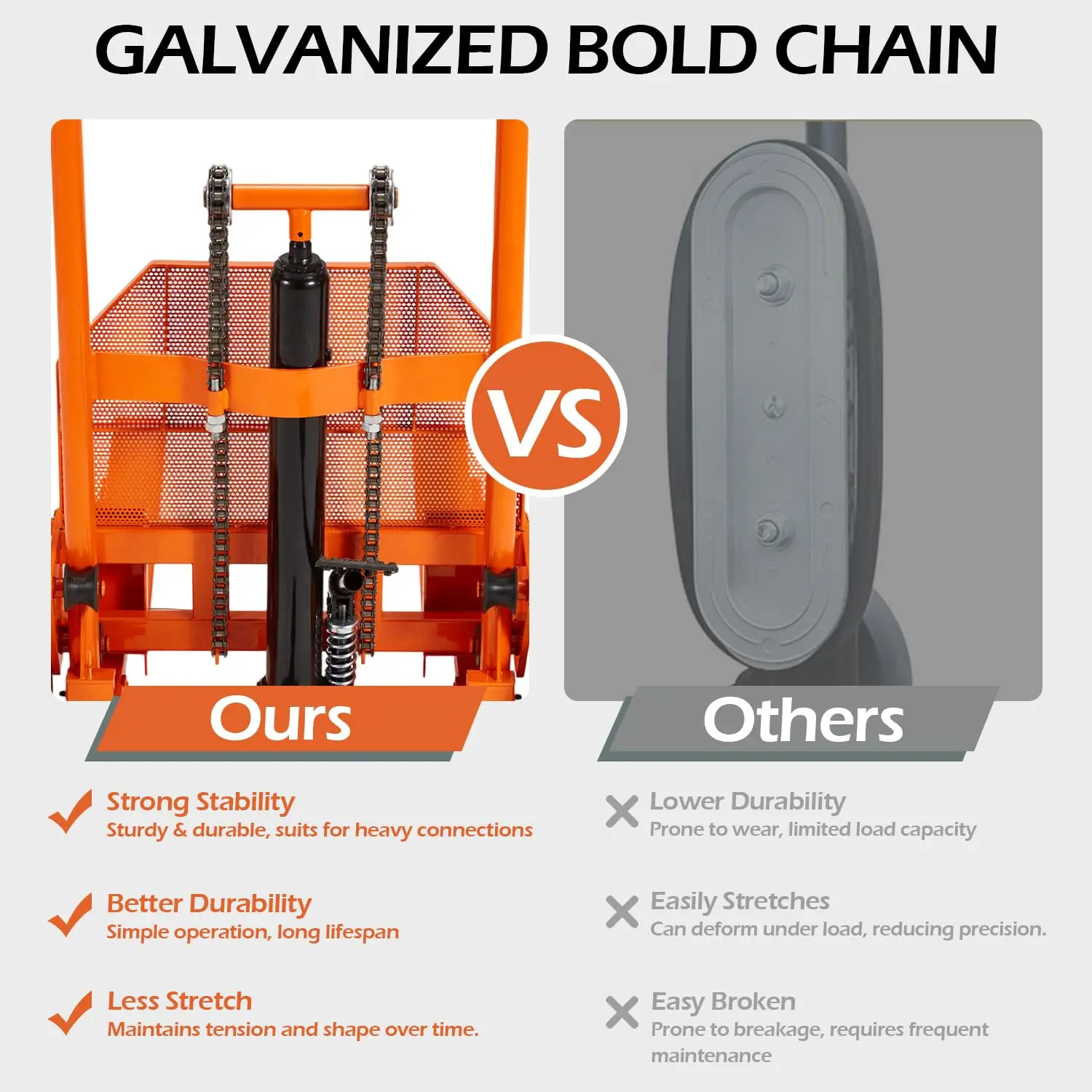 Capable of lifting up to 500 Lbs with a maximum lift height of 32 inches, this winch stacker is perfect for warehouses, workshops, and factories. It handles lifting and moving tasks efficiently, ensuring reliability in heavy-duty environments. The robust design supports various materials, making it a versatile choice for different settings.