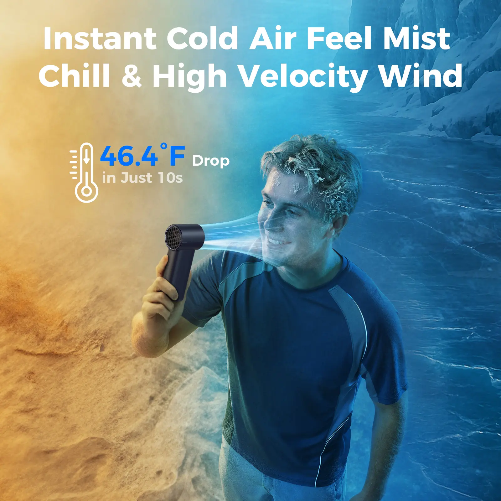 Aecooly-ColdAir 02 Handheld Mist Fan with High-Speed Turbo - Instant 8°C Cooling - 4500mAh Battery (20H MAX), 5 Wind Speeds, Pocket-Sized Portable Fan for Travel, Music Festivals, Camping & Makeup
