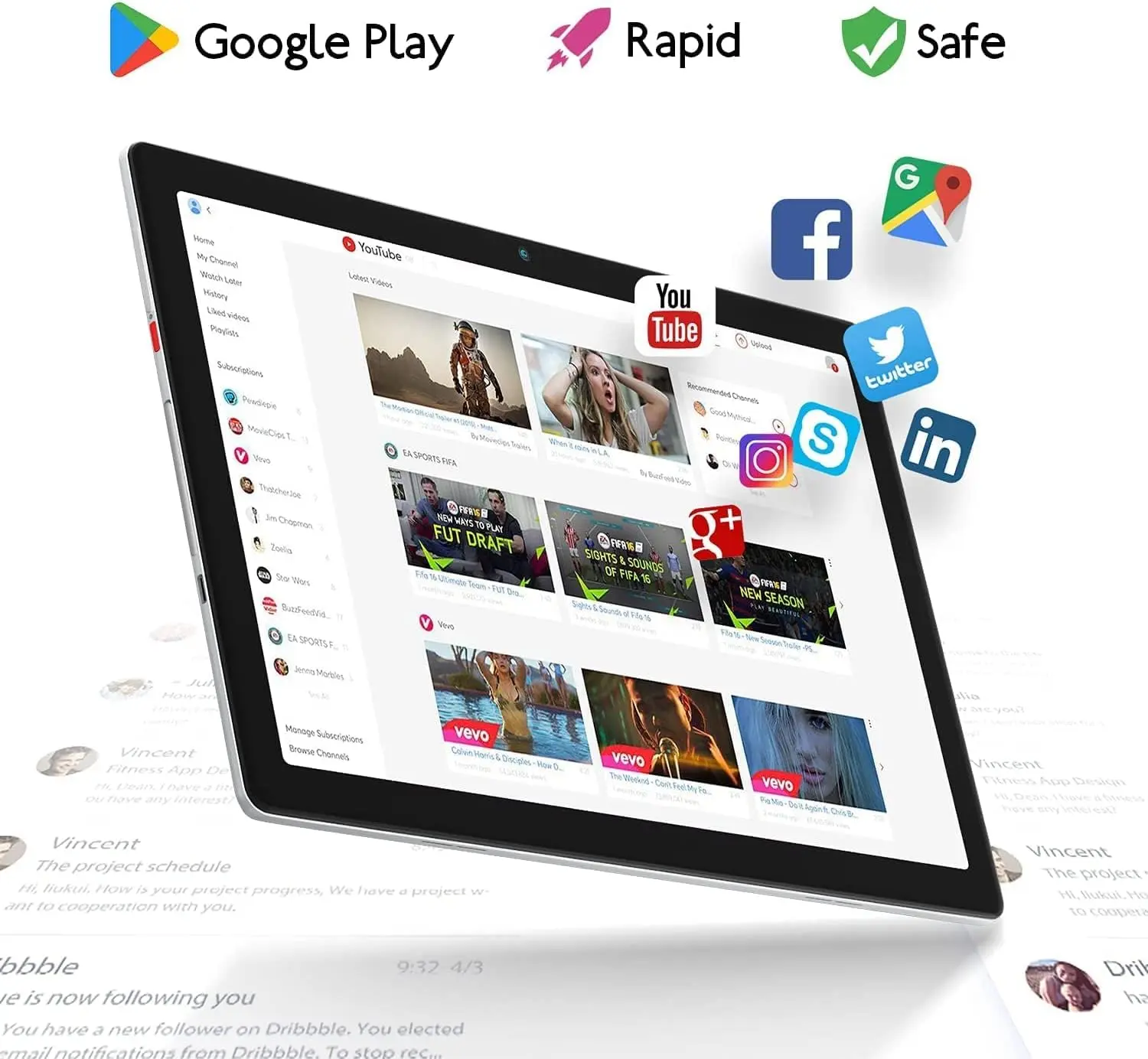 【5000mAh Battery Life】This 10.1 inch tablet Android is equipped with a 5000mAh battery. It can be recharged repeatedly. The battery can last for 8-12 hours on a single charge. It can download movies, music and e-books.