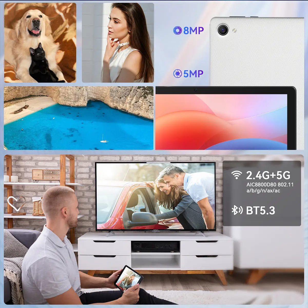 【Large HD Screen】The 1280*800 resolution brings brighter color clarity,10 inch large screen,wide field of view, can enjoy comfortable video watching experience. 5MP front camera + 8MP rear camera helps you to record the beautiful moments in your life all the time.