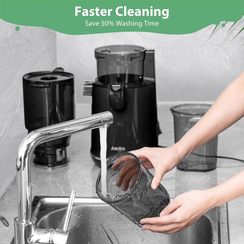【High Yield & Pulp Juice Separation】- 7-stage upgraded cold press technology can extract a higher yield of essential nutrients and vitamins. It helps minimize oxidation and maintain the original flavor of juice. With a 250W high-power motor, the Aeitto electric juicer can efficiently separate the juice and pulp, providing purer juice, dryer pulp, and higher nutrition.