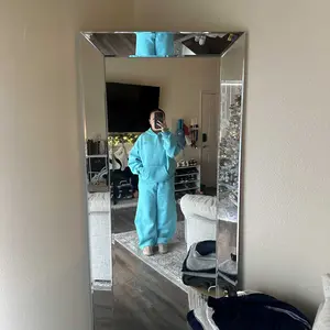 Just got my hoodie set and I’m in love! The light blue is so vibrant, inside is super soft and thick, perfect for winter. Barrel sweatpants are actually flattering and the hood is nice and big. 10/10 would recommend, I’m living in this set.